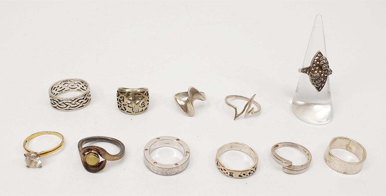 Eleven silver rings, gross weight 47g. UK shipping £14.