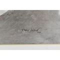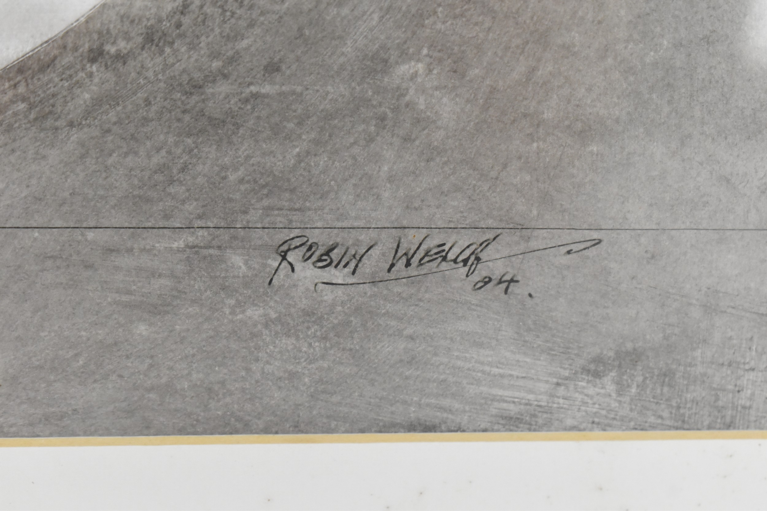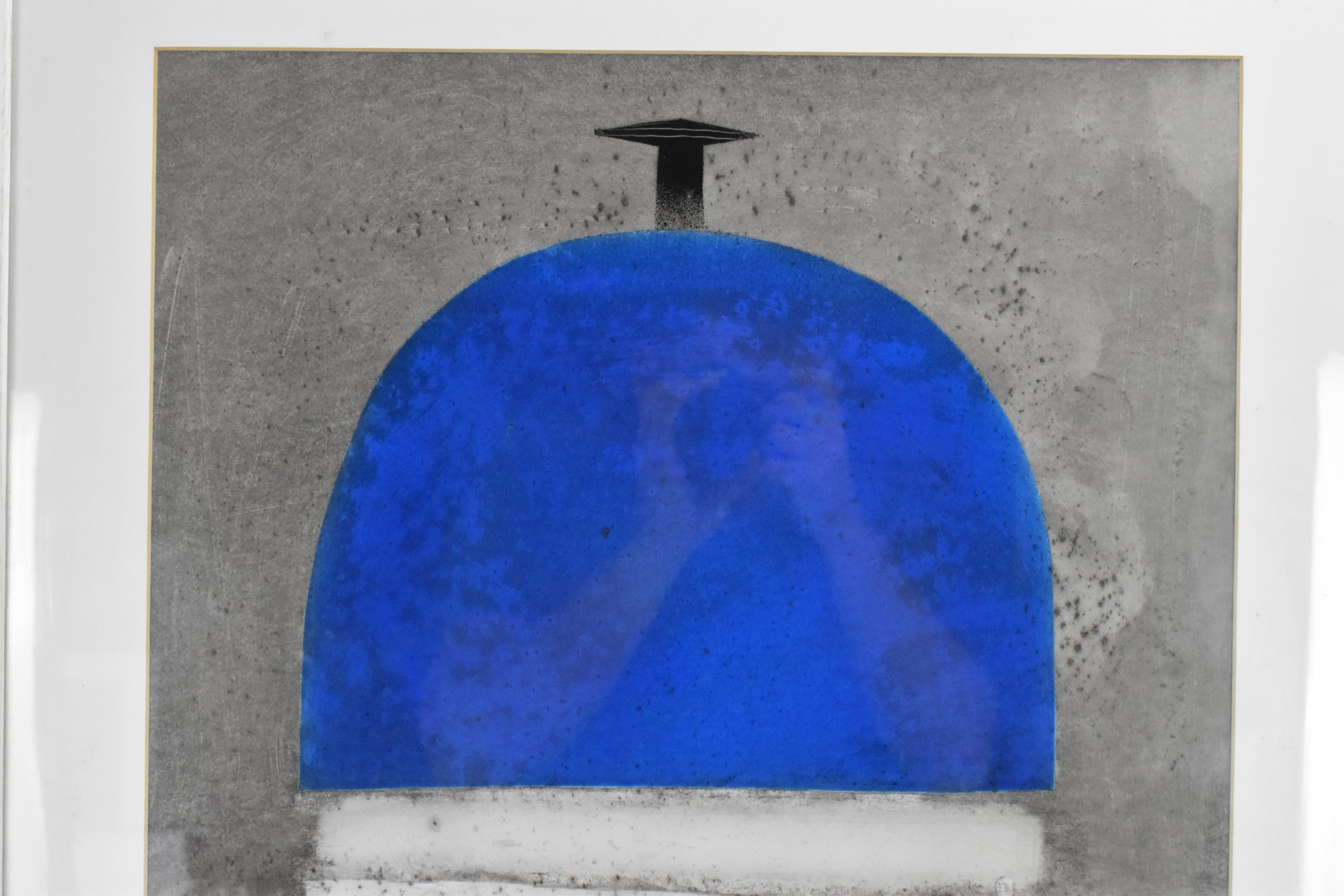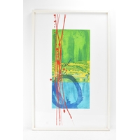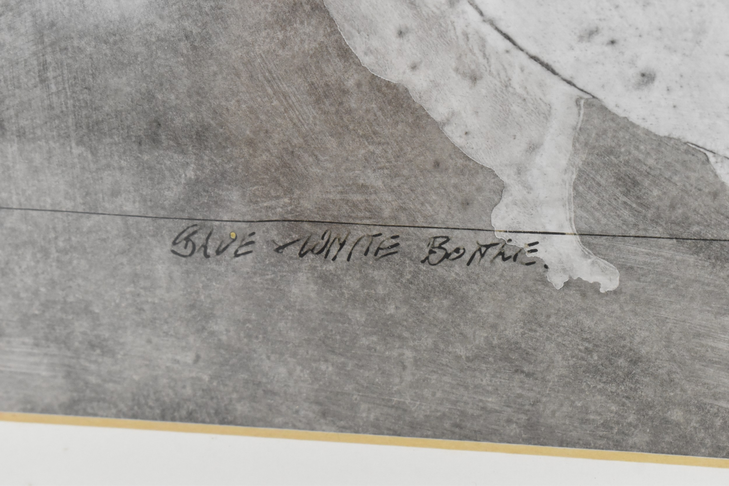 Robin Welch (1936-2019) - Blue & White Bottle - a large acrylic painting depicting a studio pottery pot, titled, signed and dated 04 to lower edge in ink, 61.5cm x 43cm, mounted and glazed in a white painted wood frame