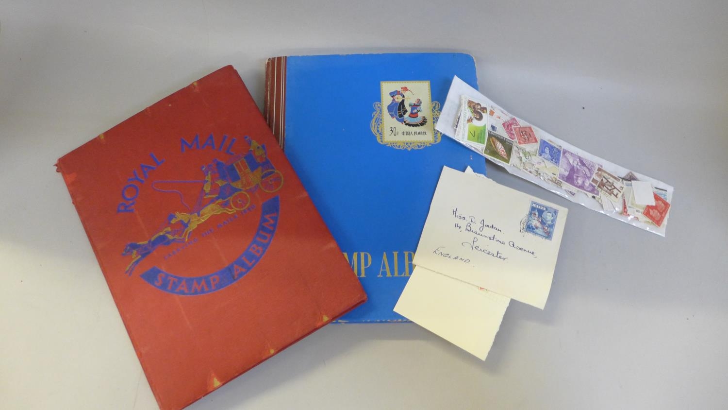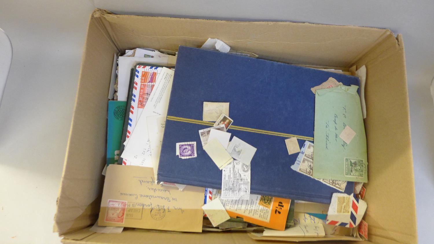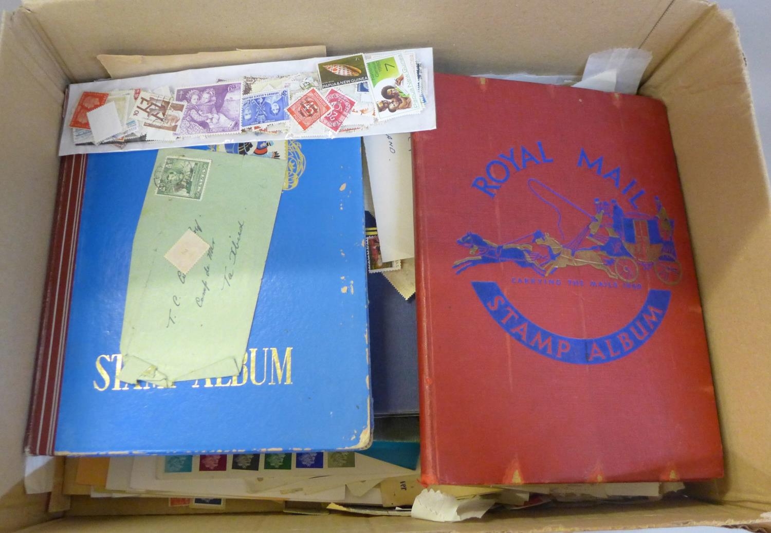 A box of stamps, loose and in albums