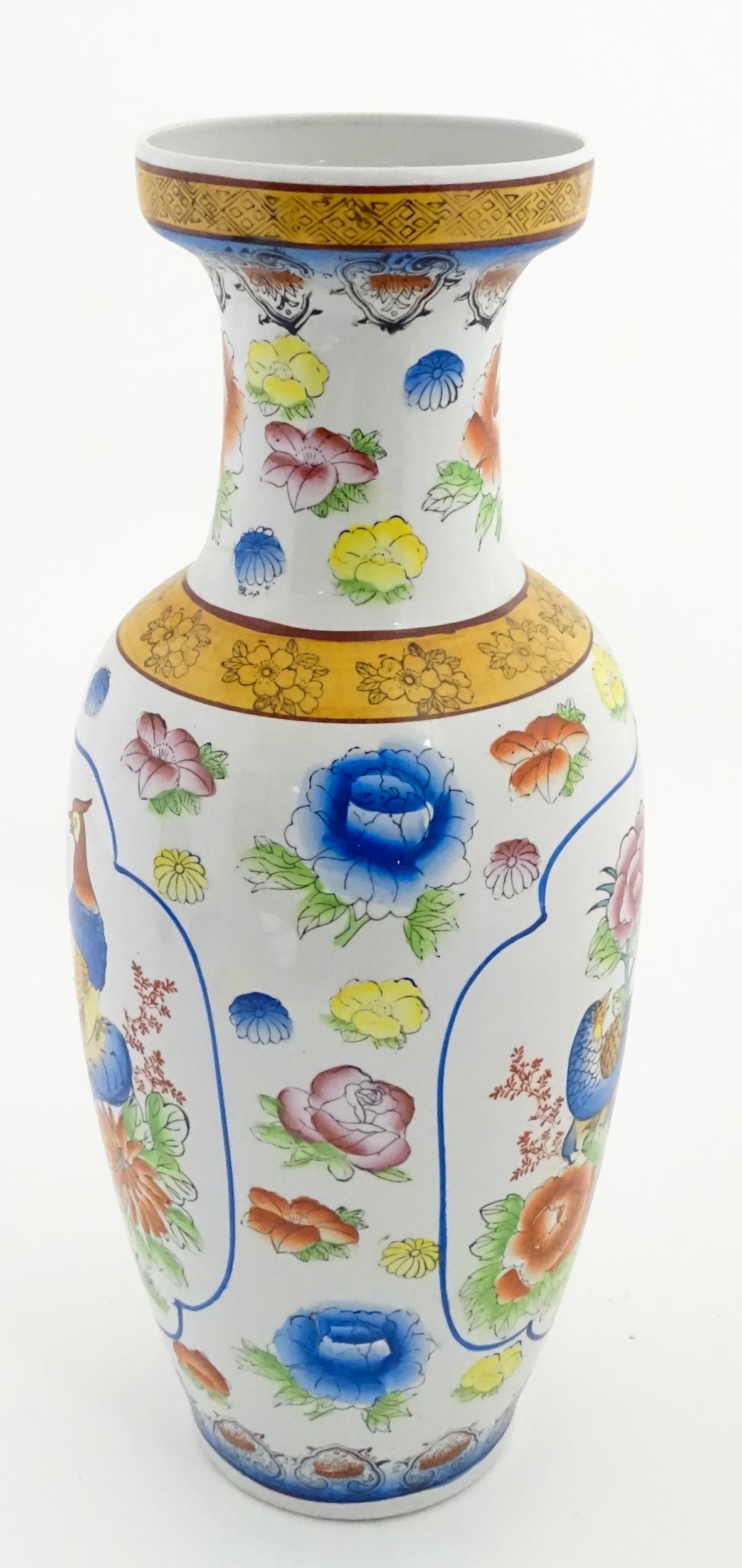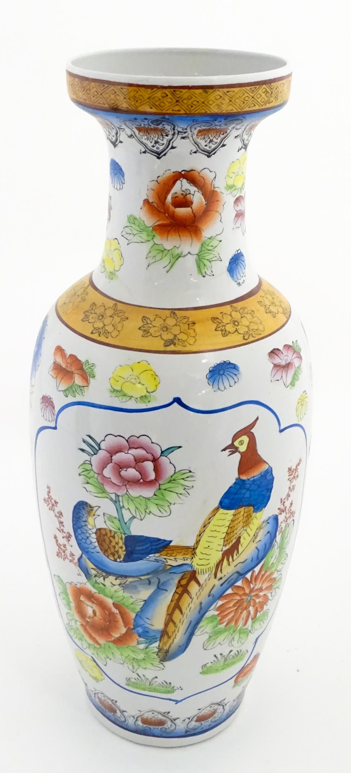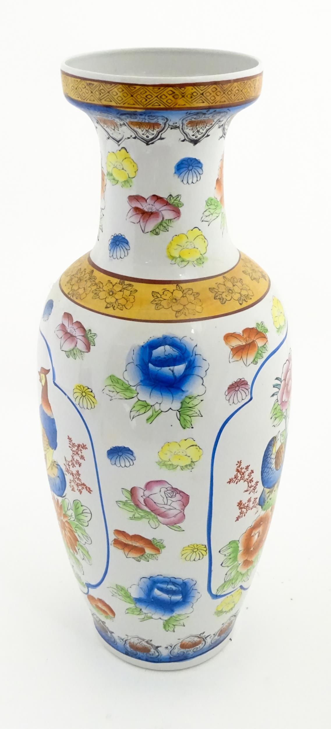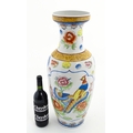A large Chinese vase decorated with birds and flowers. Marked under. Approx. 24" high