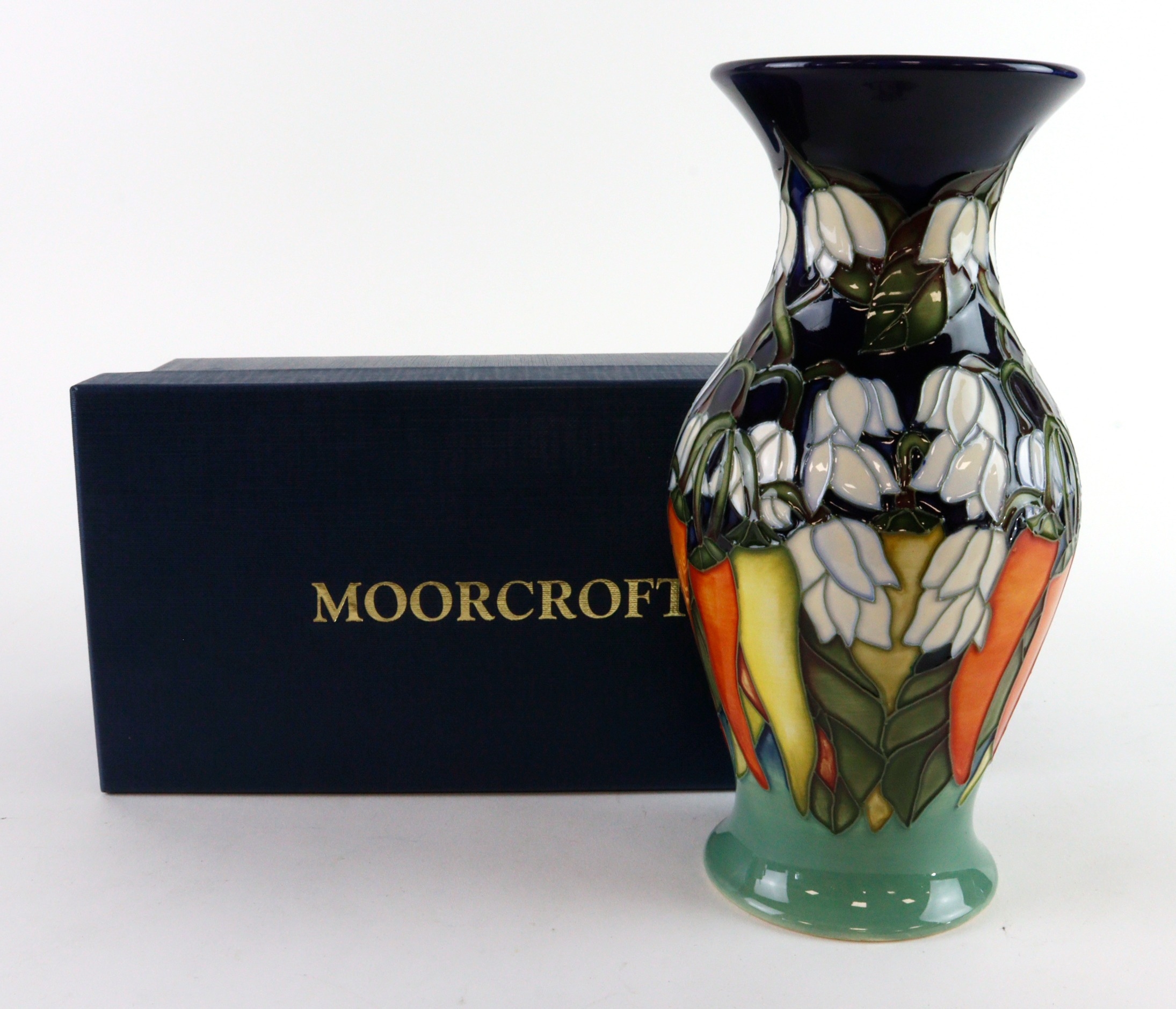 Moorcroft 'Chilli Peppers' pattern vase, designed by Paul Hiditch, dated 2009, makers marks to base, height 19cm approx., contained in a Moorcroft box
