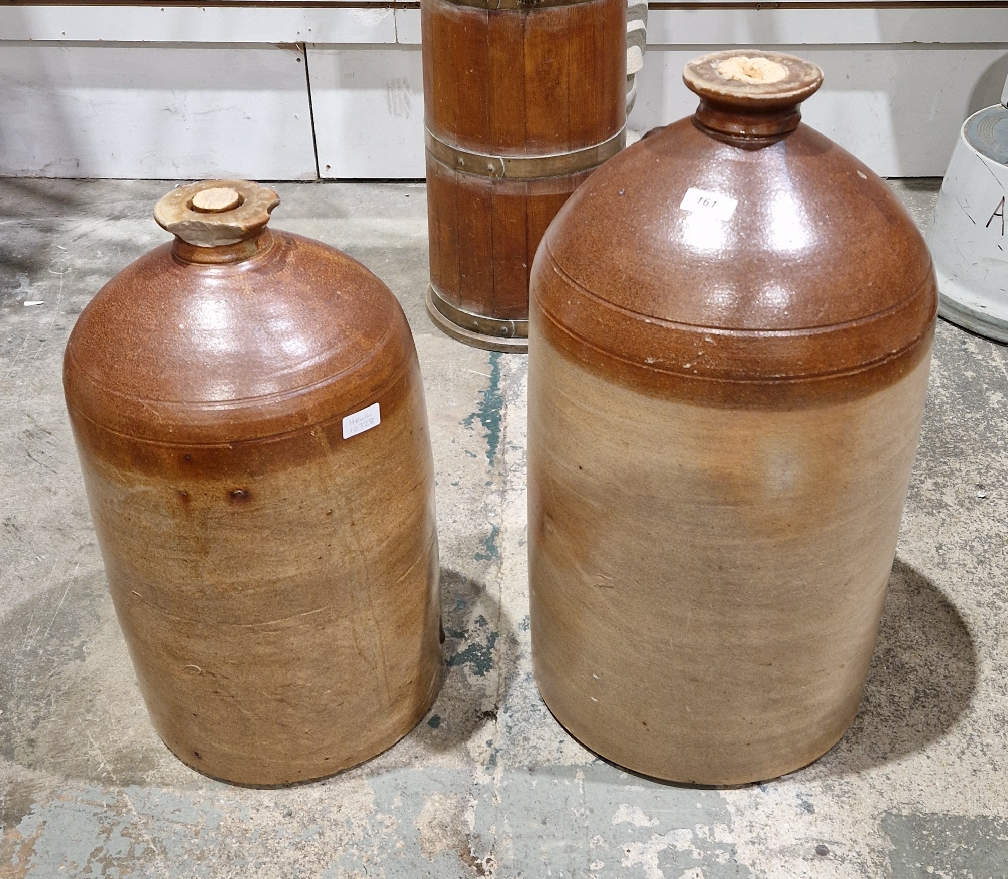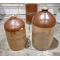 Two large 19th century two-tone brown stoneware flagons, the rims with impressed marks for Baull & Co of London, largest 57cm high (2)