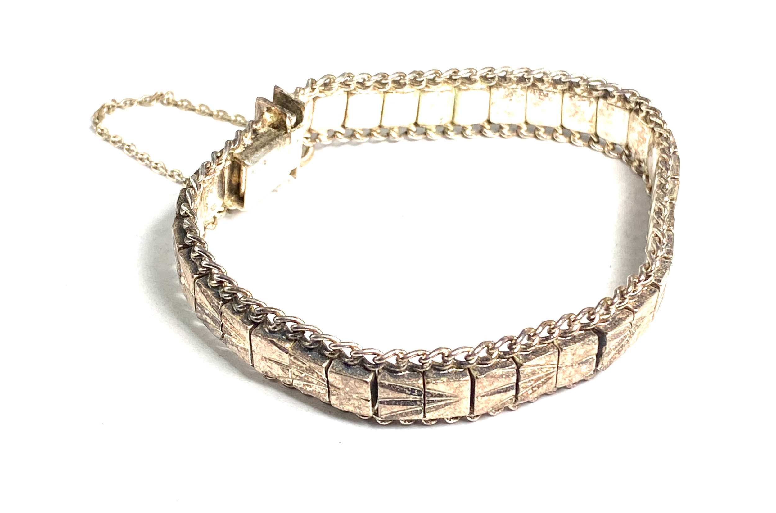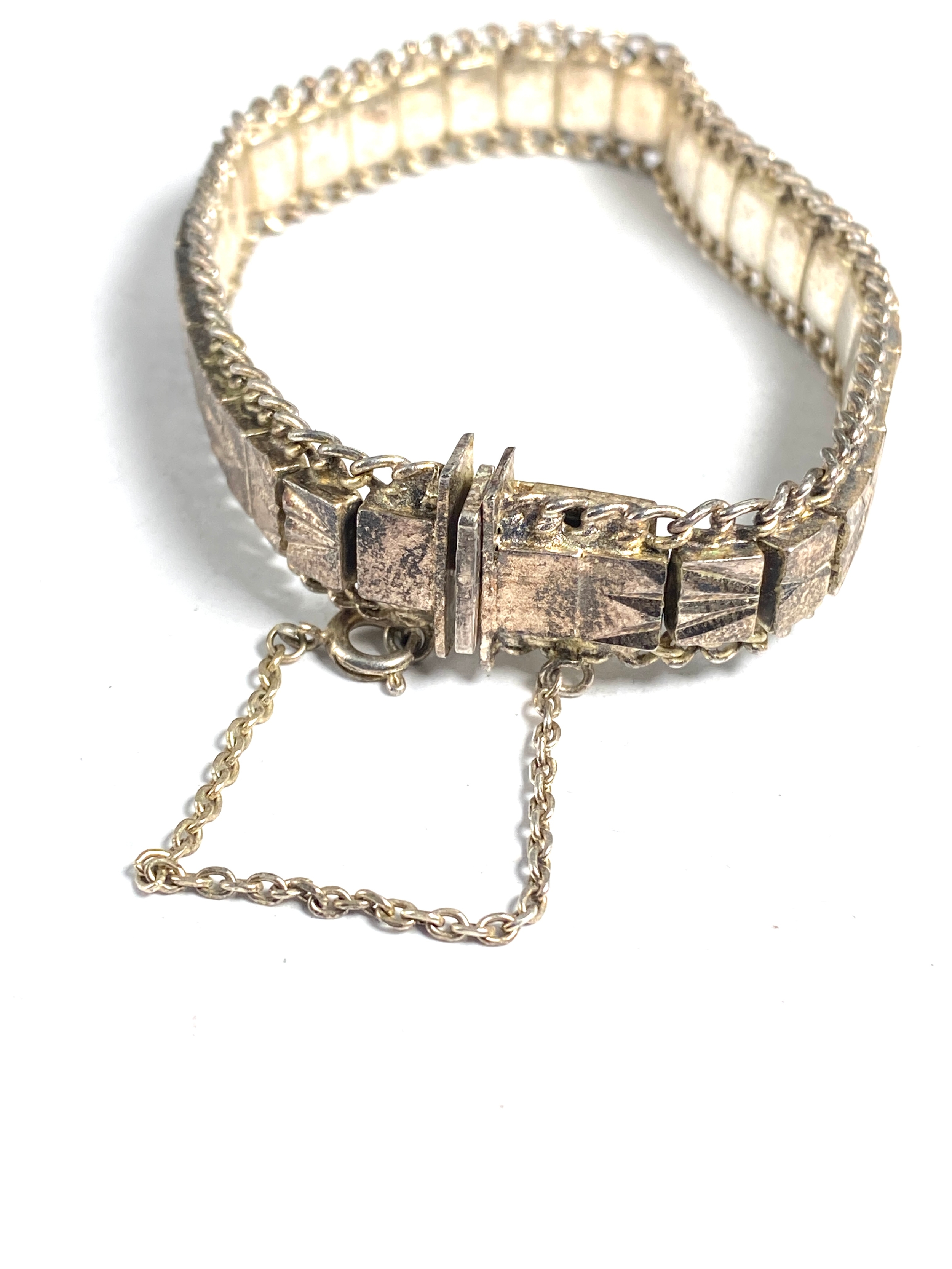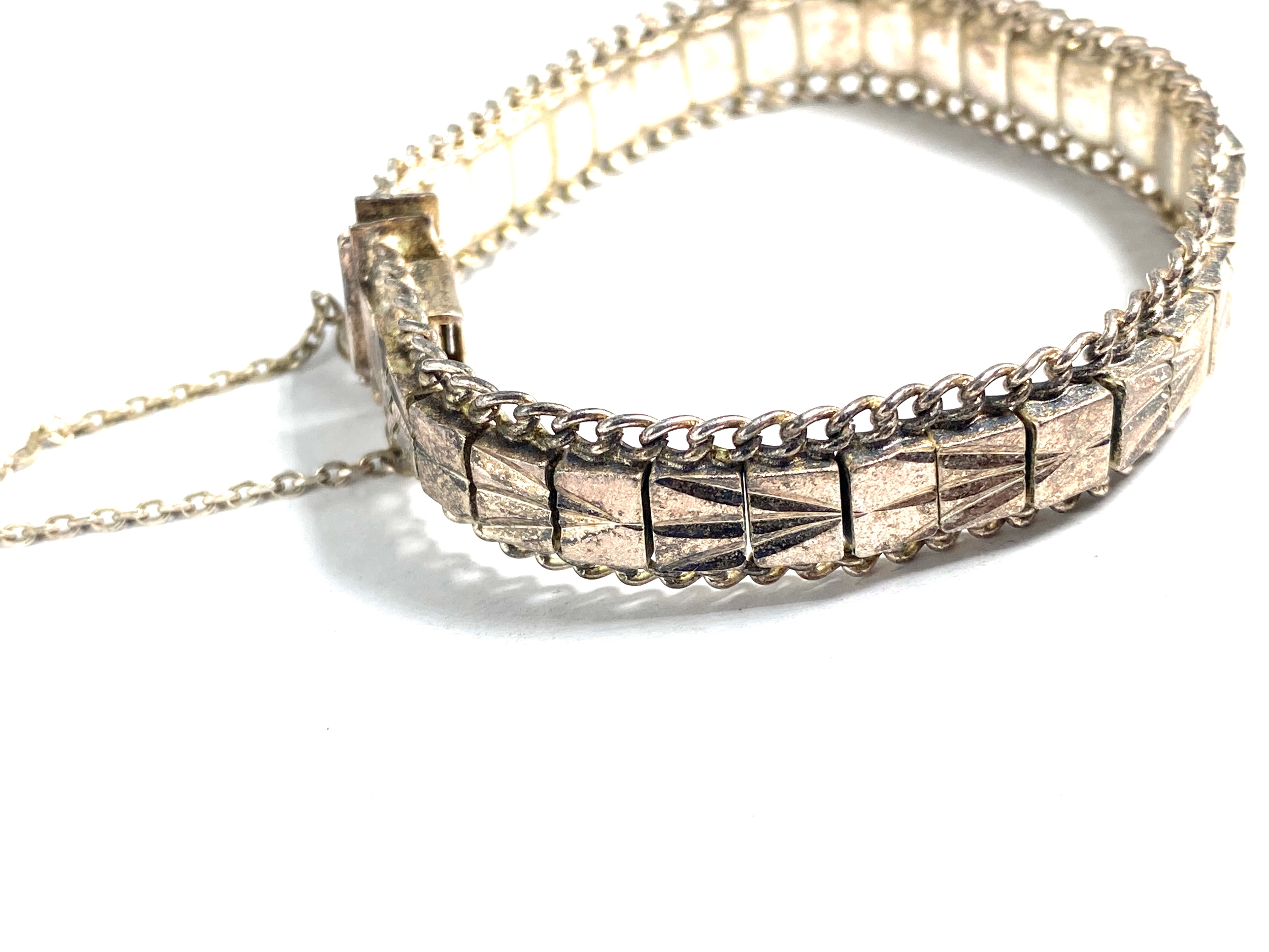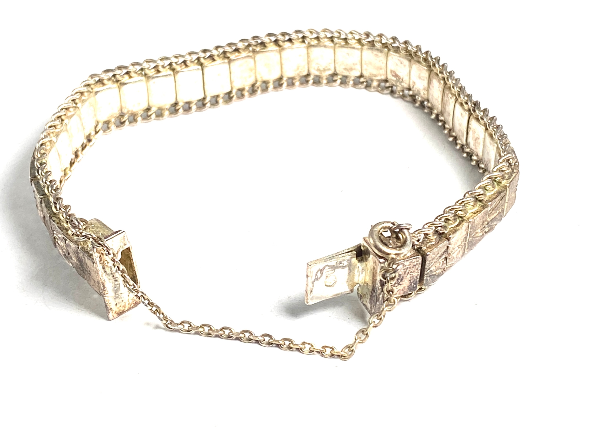 Vintage Silver link bracelet featuring a textured, geometric design and a safety chain Weight 37g