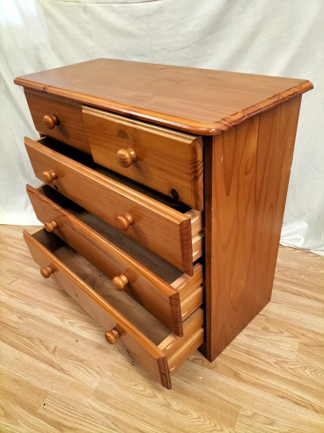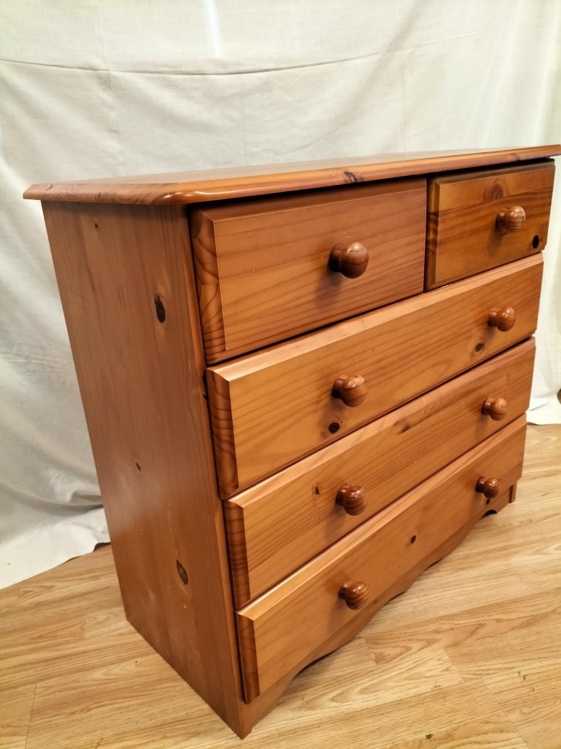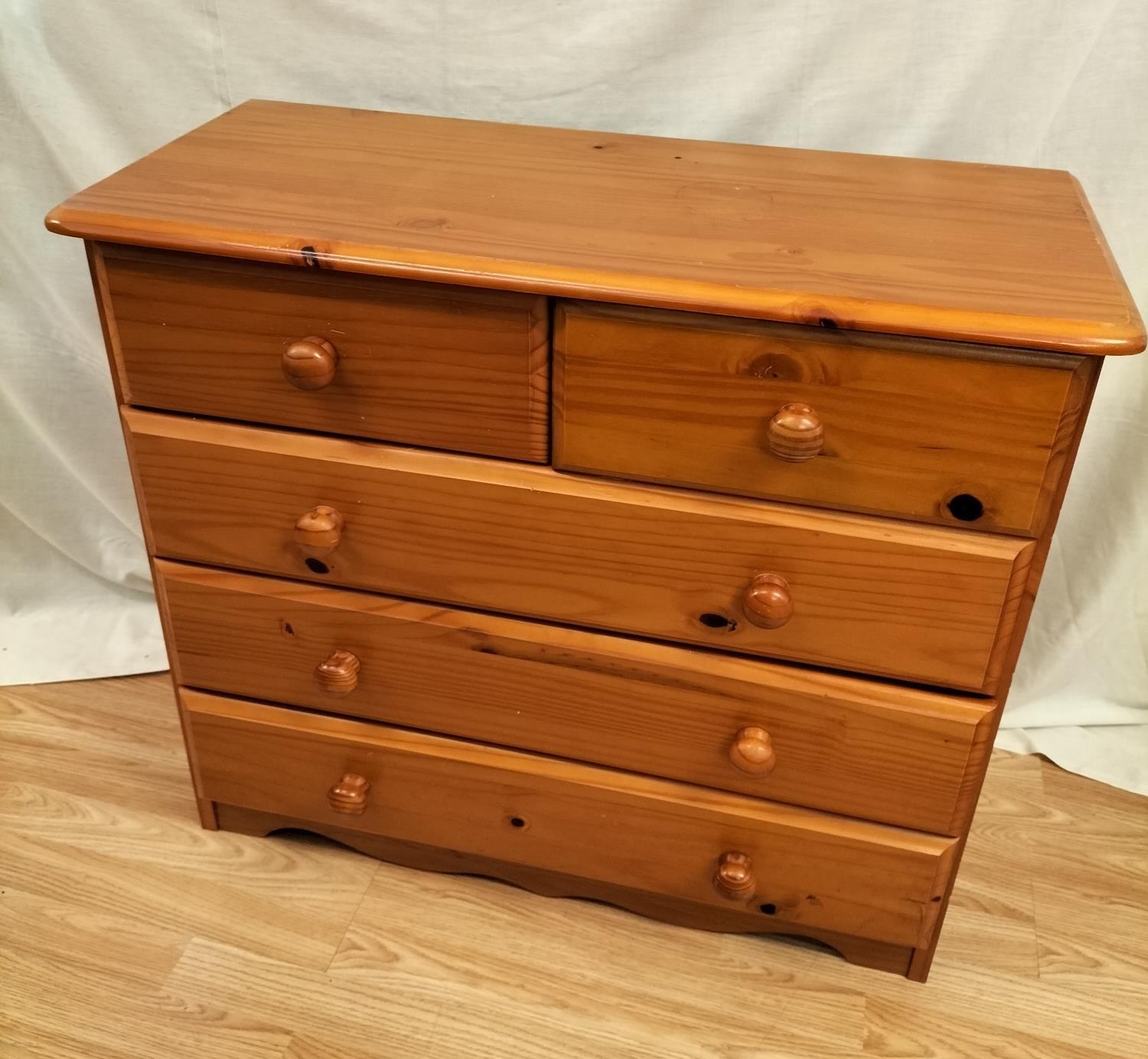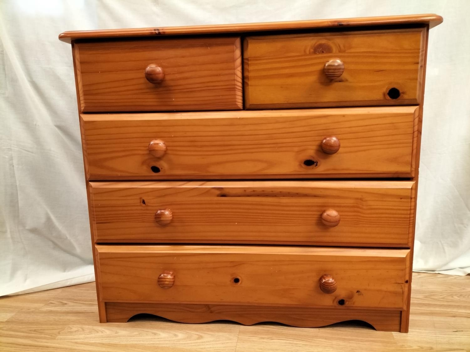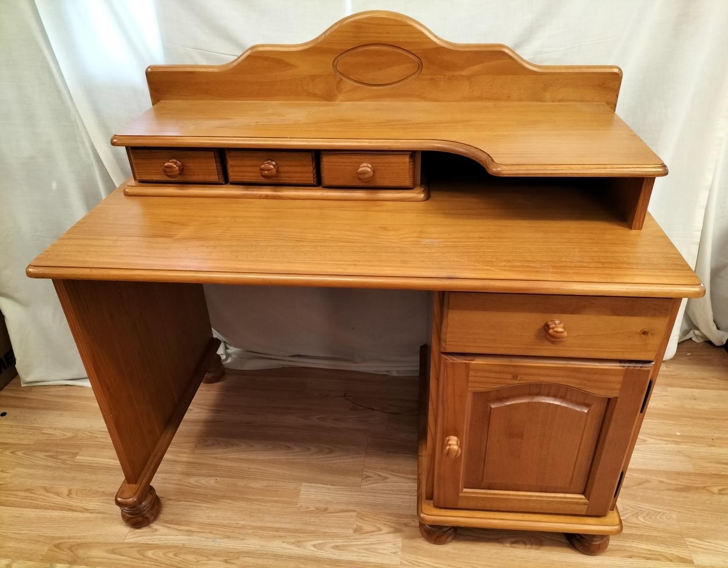 Pine Dressing Table with Side Drawer Over Cupboard and Removeable Three Drawer Top Section plus a Set of Pine Two Over Three Drawers (75cm High, 85cm x 39cm). Desk Measures 73cm High (Without Top), 104cm (With Top), 113cm x 61cm. Collection Only.