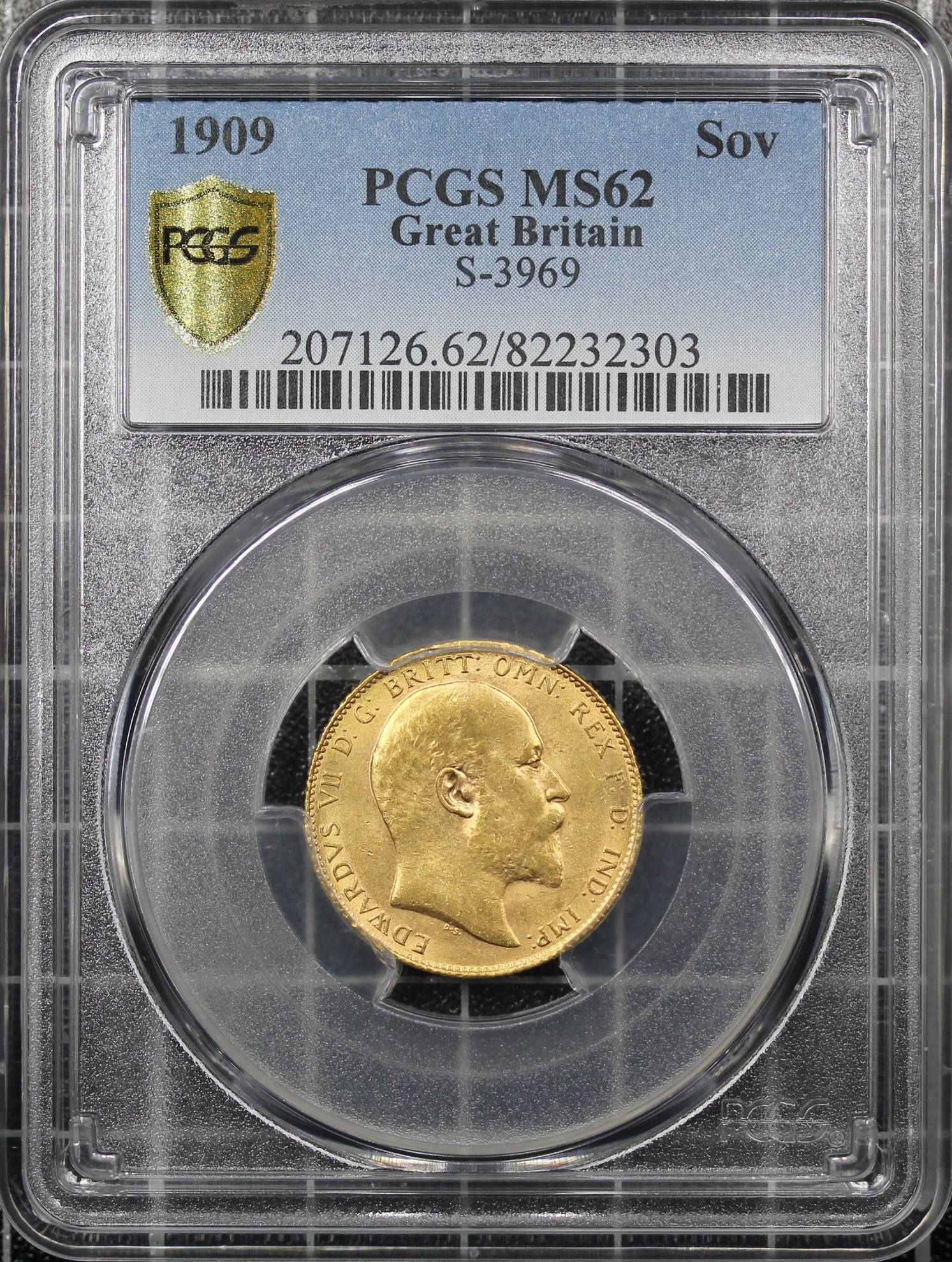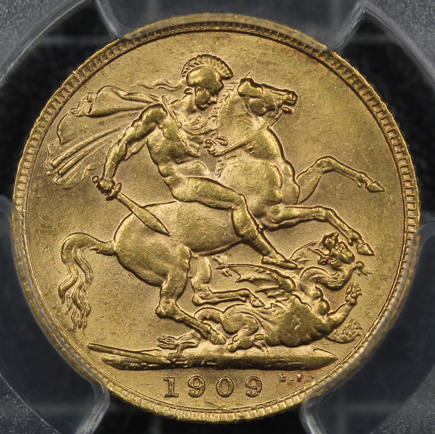 1909 Sovereign, Edward VII (S.3969). Graded PCGS MS62, gEF with original mint colour through the devices.
