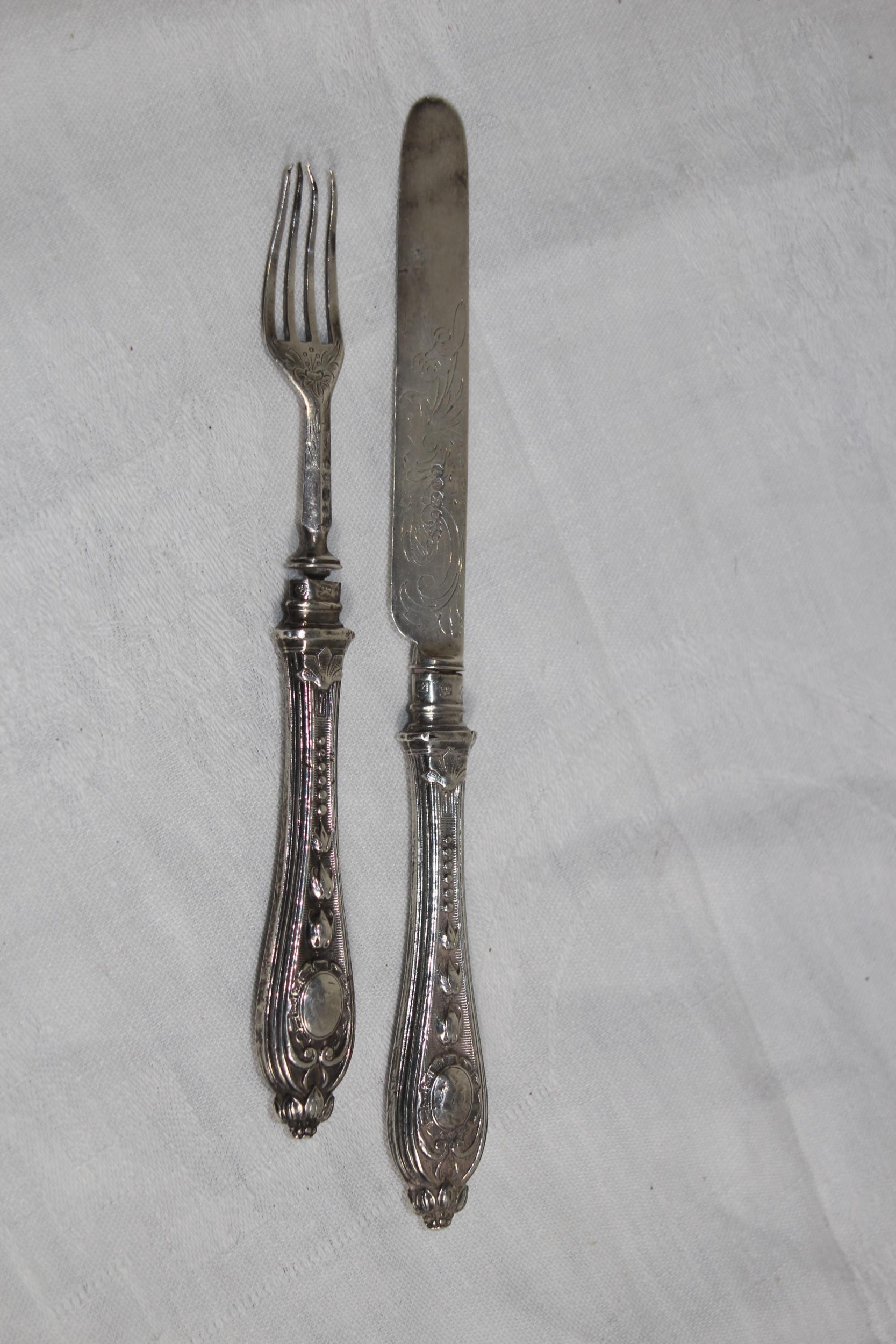 SILVER KNIFE AND FORK SET SHEFFIELD 1861, 53.4 GRAMS
