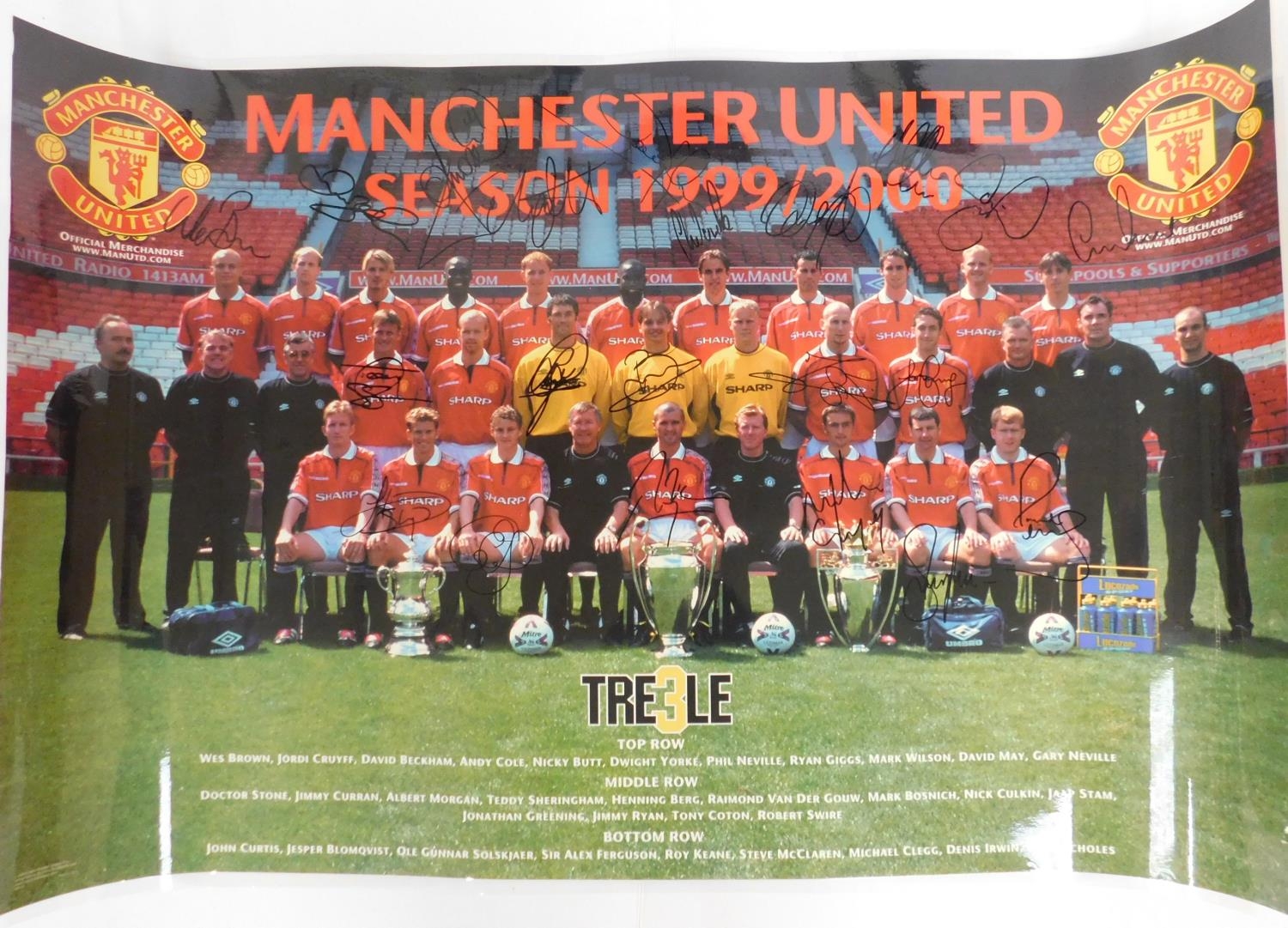 Manchester United treble winning team, signed laminated poster
