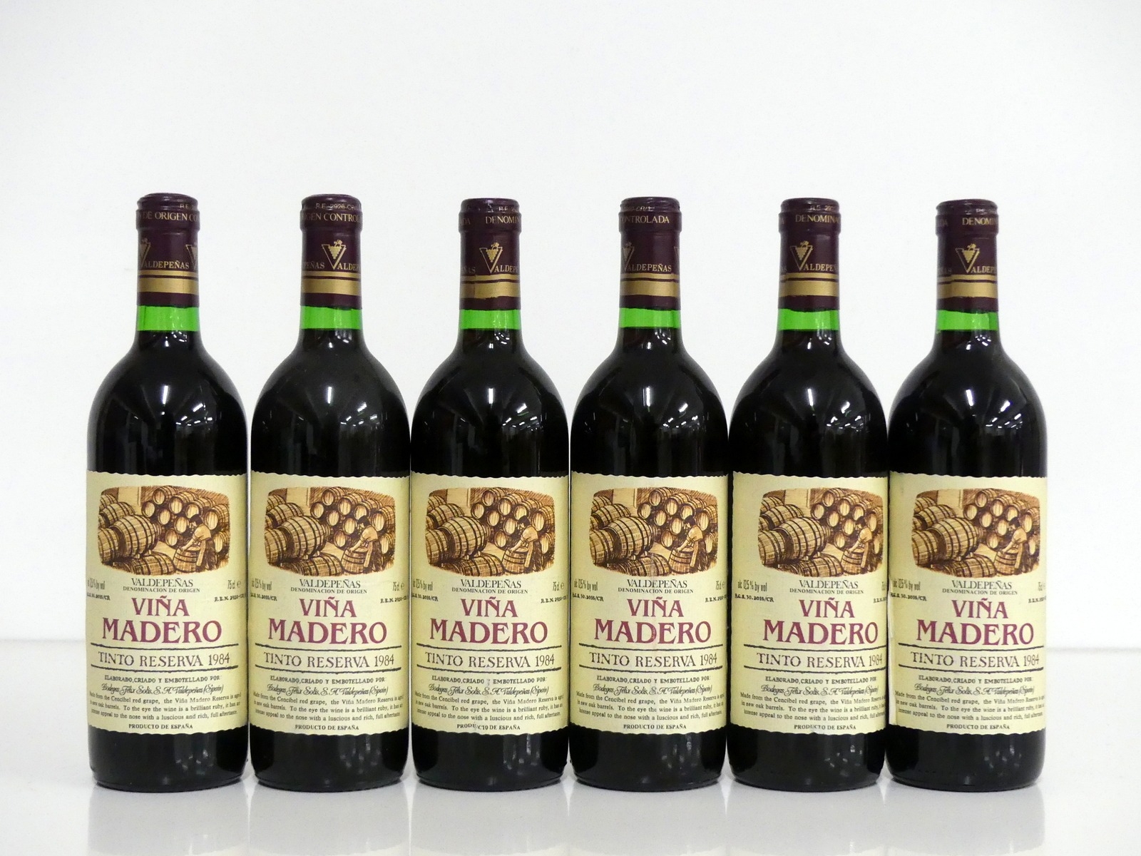 6 bts Viña Madero Tinto Reserva Valdepeñas 1984 base of neck or better