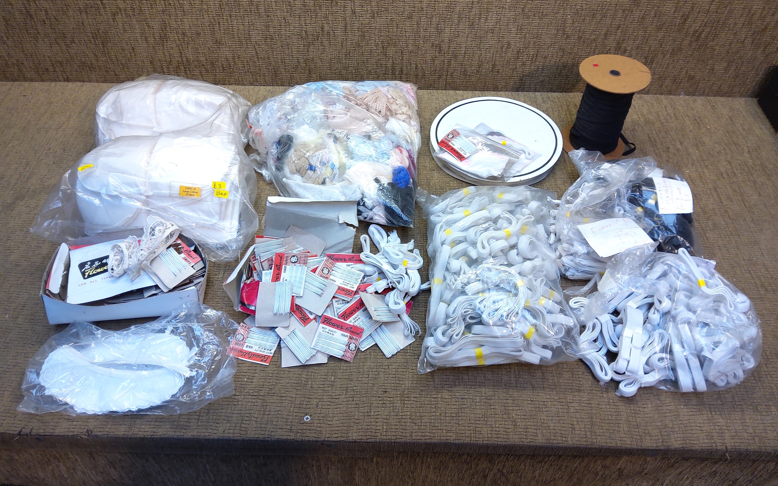 Large quantity of Haberdashery including elastics, shoulder pads and lace.