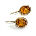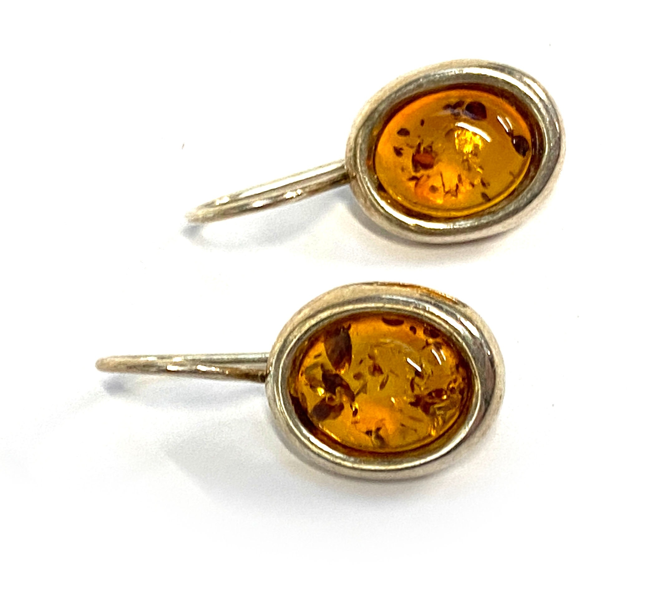 A pair of 925 silver and amber cabochon earrings, 1.4cmL excluding hooks, 3.3g