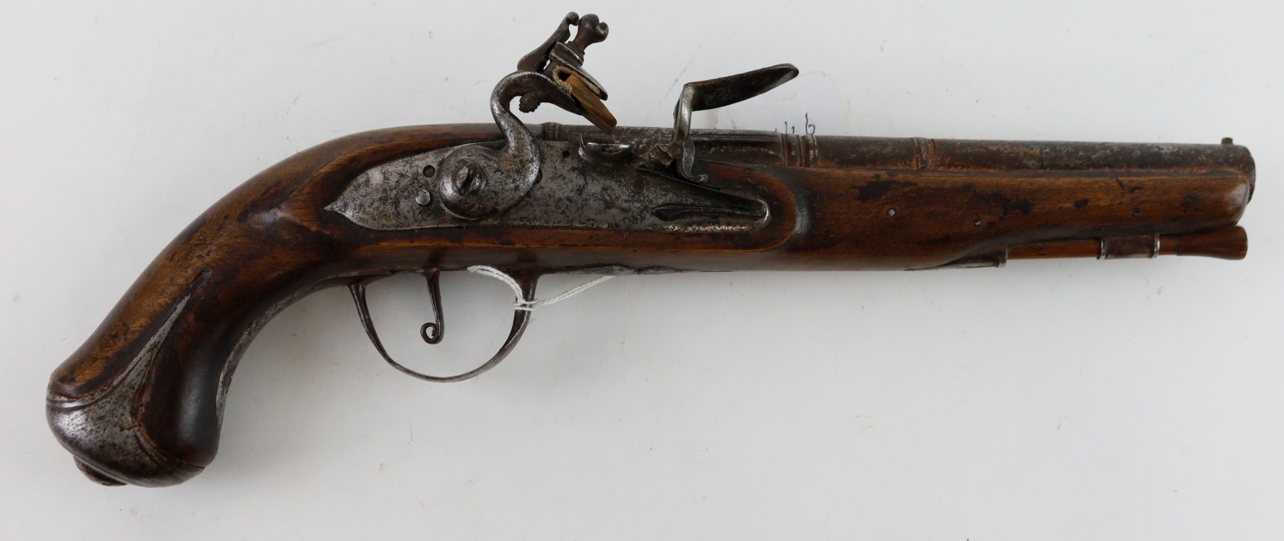 Flintlock holster pistol c1800 unmarked possibly continental in working order.