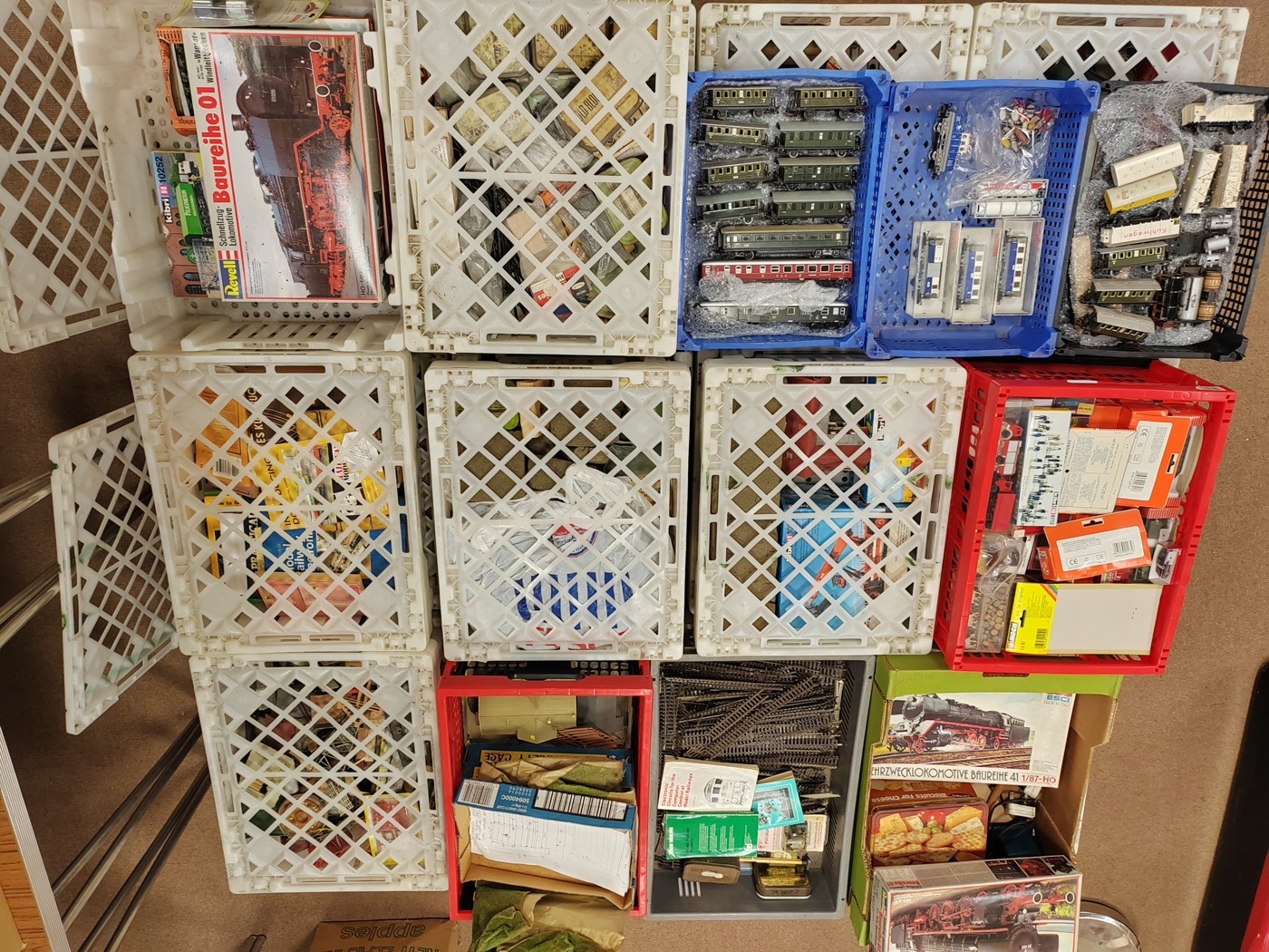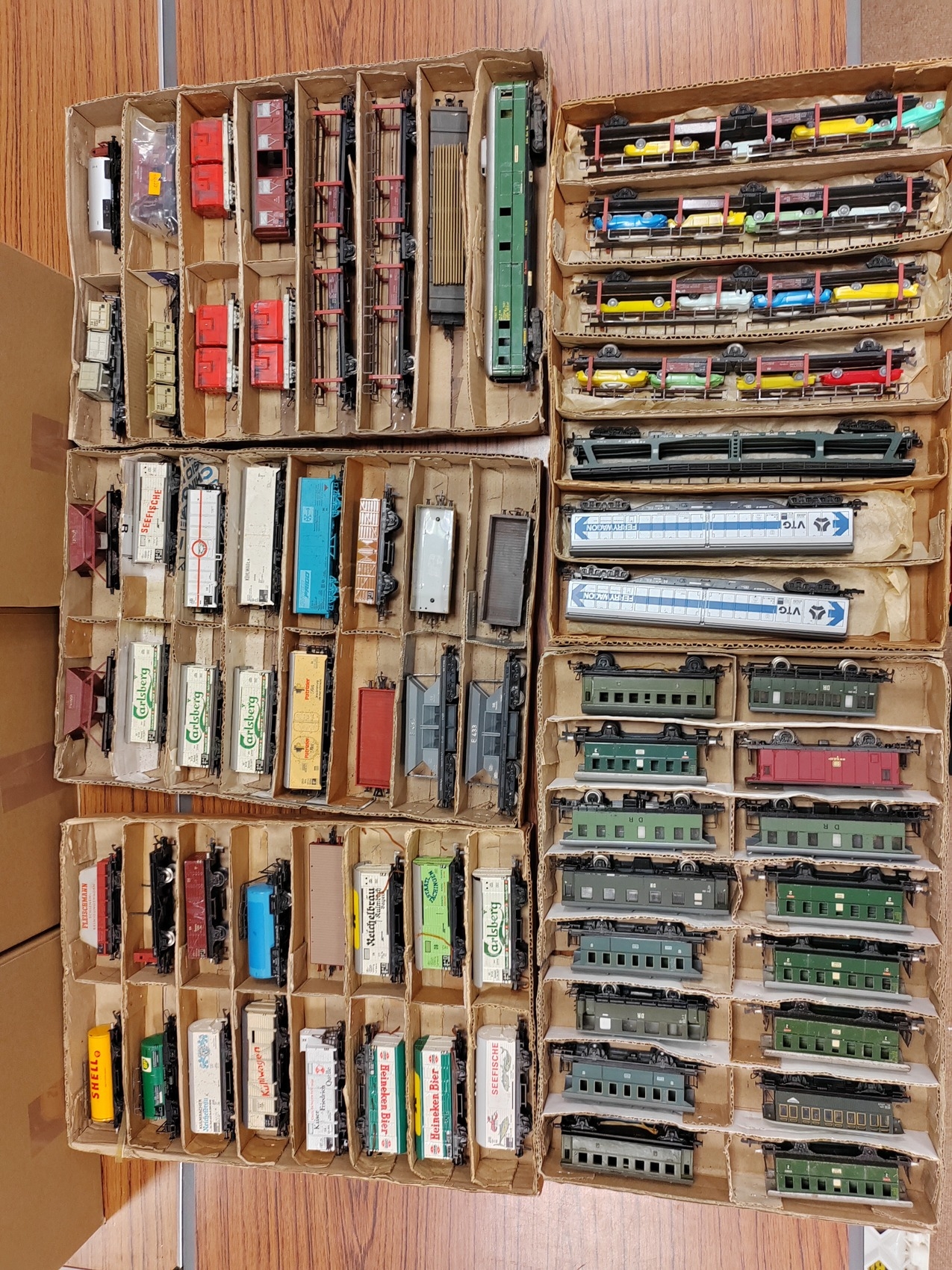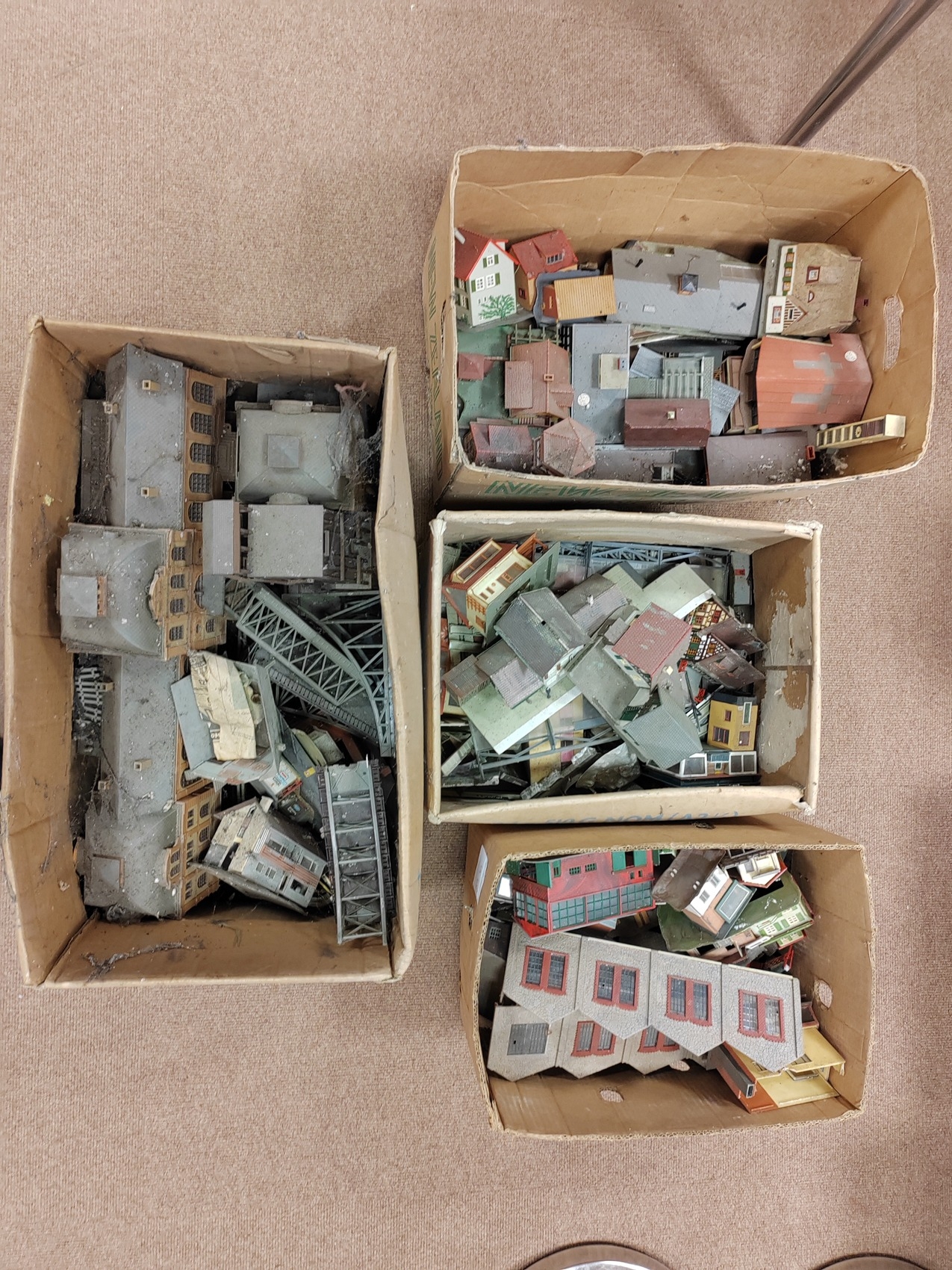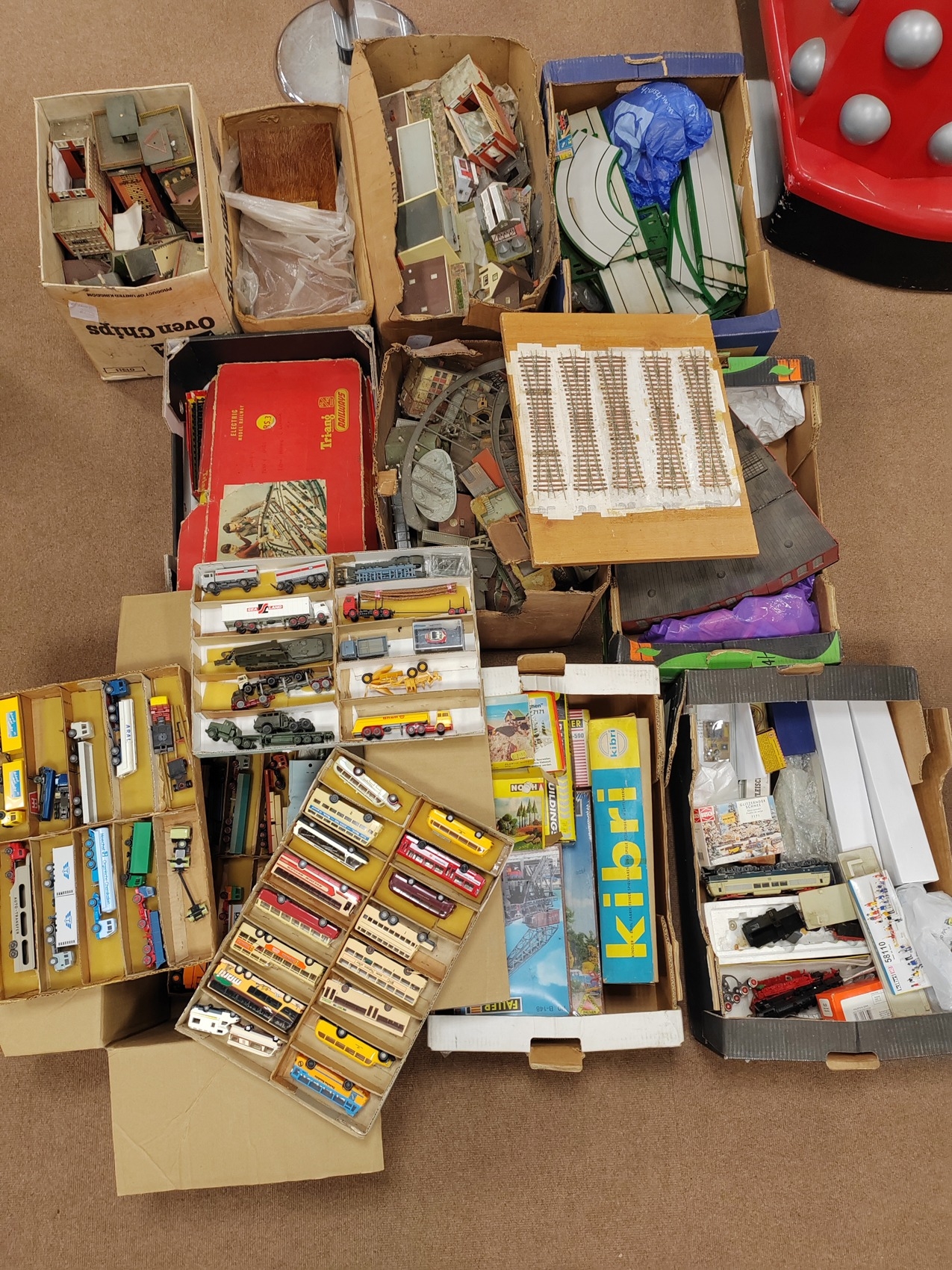 Collection of cars, trucks, coaches, wagons, buildings etc. generally fair to very good with ranges from Brawa, Fleischmann Roco etc. large quantity. (41B)