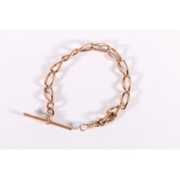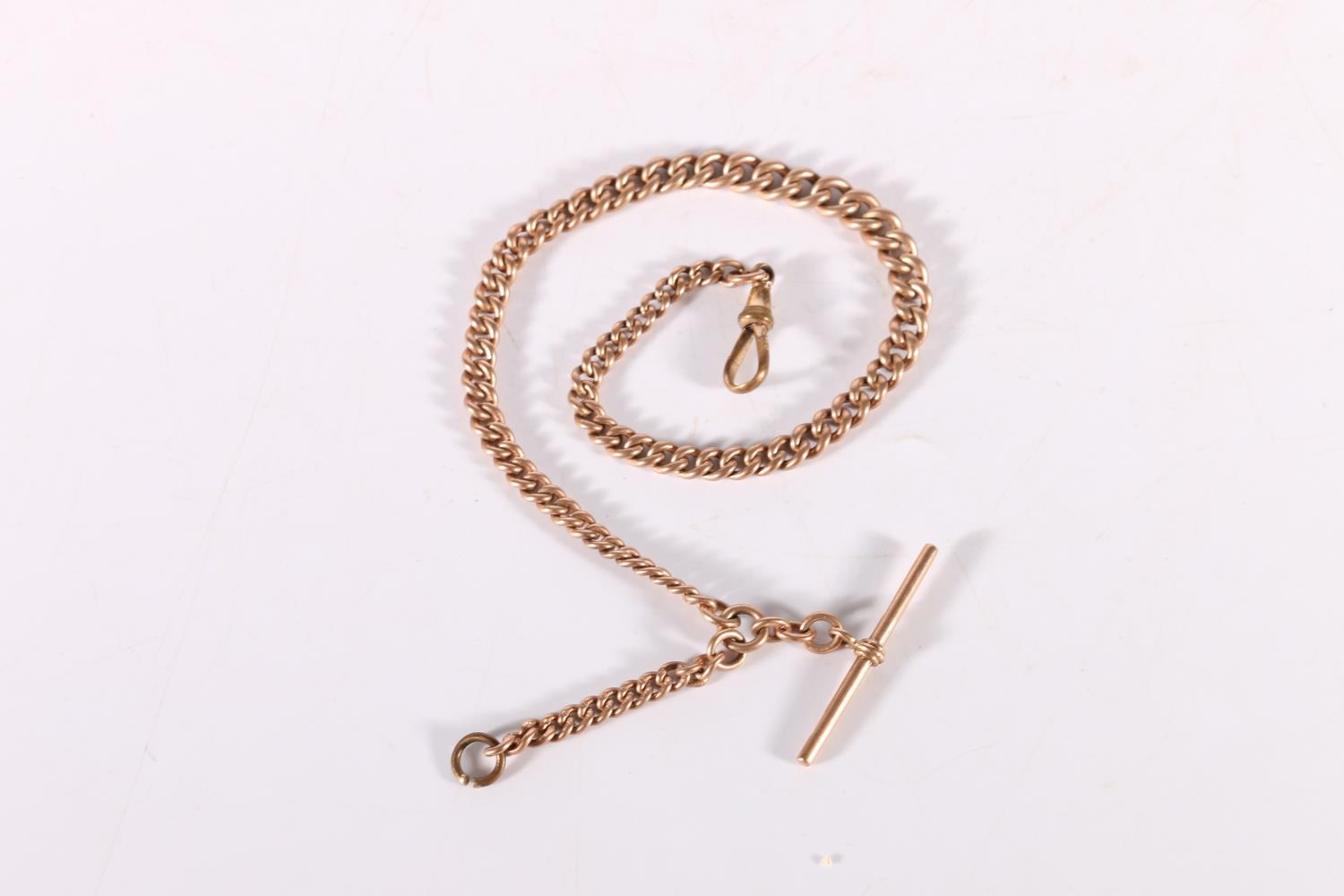 9ct rose gold curb link watch guard, maker WG&S, 30.6g gross