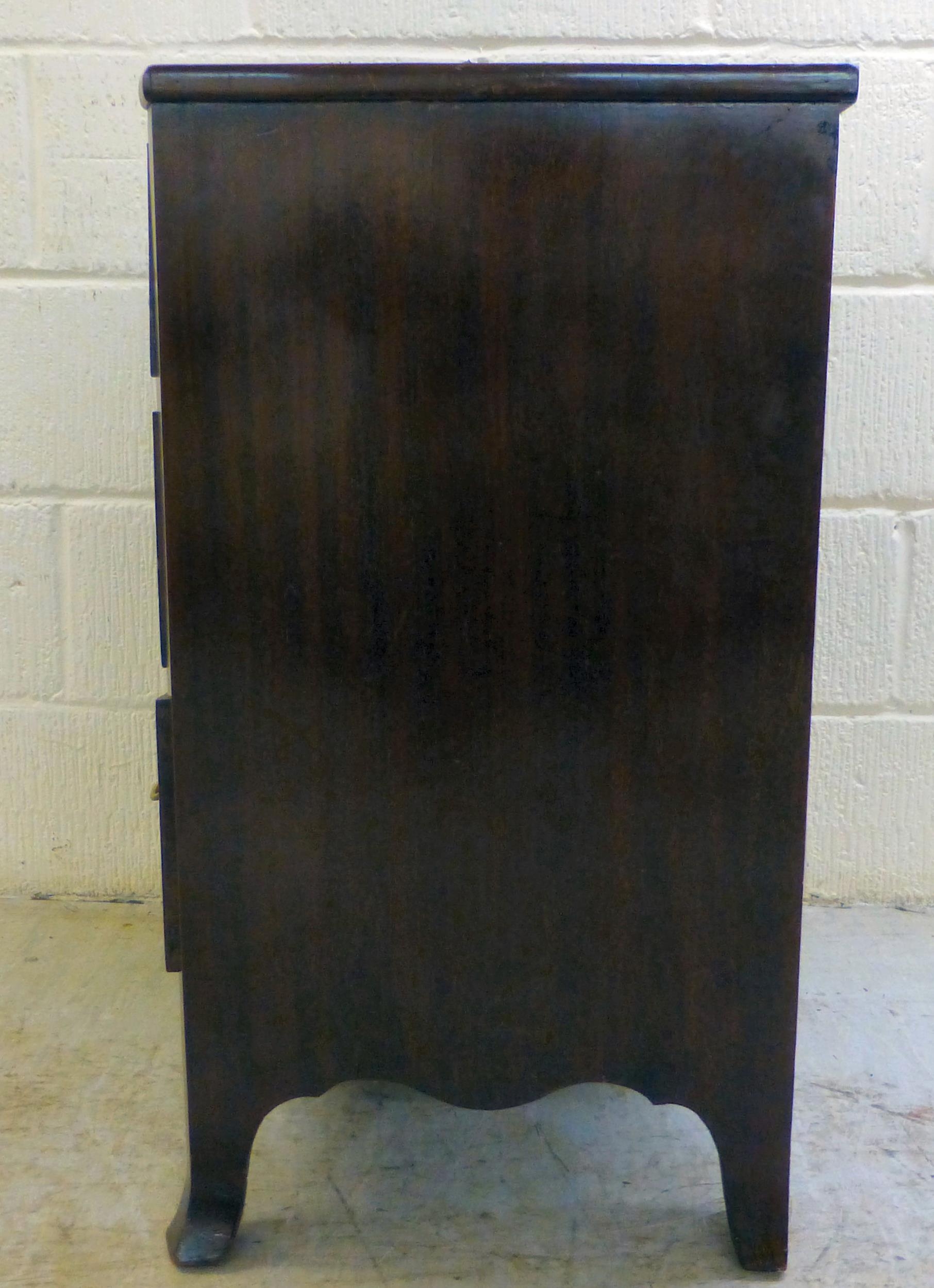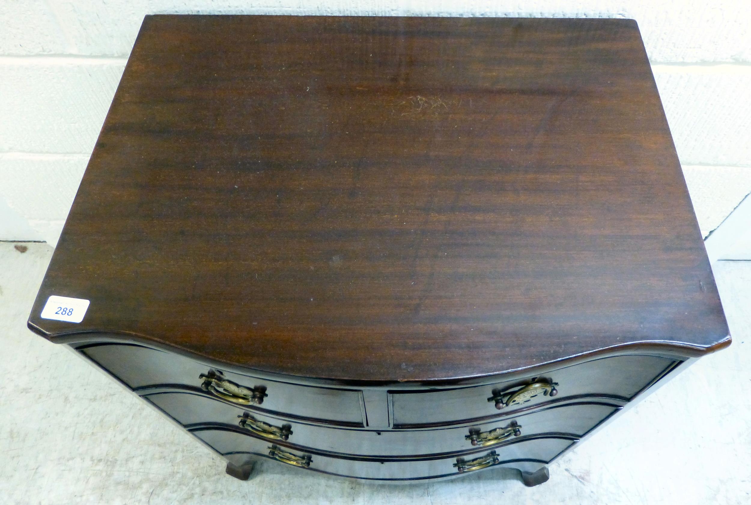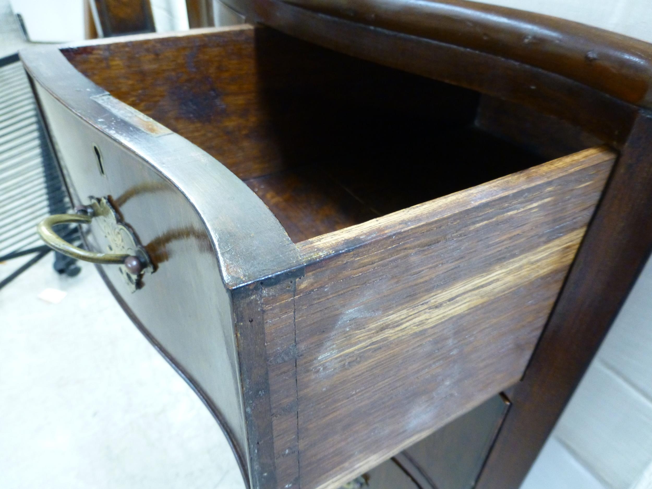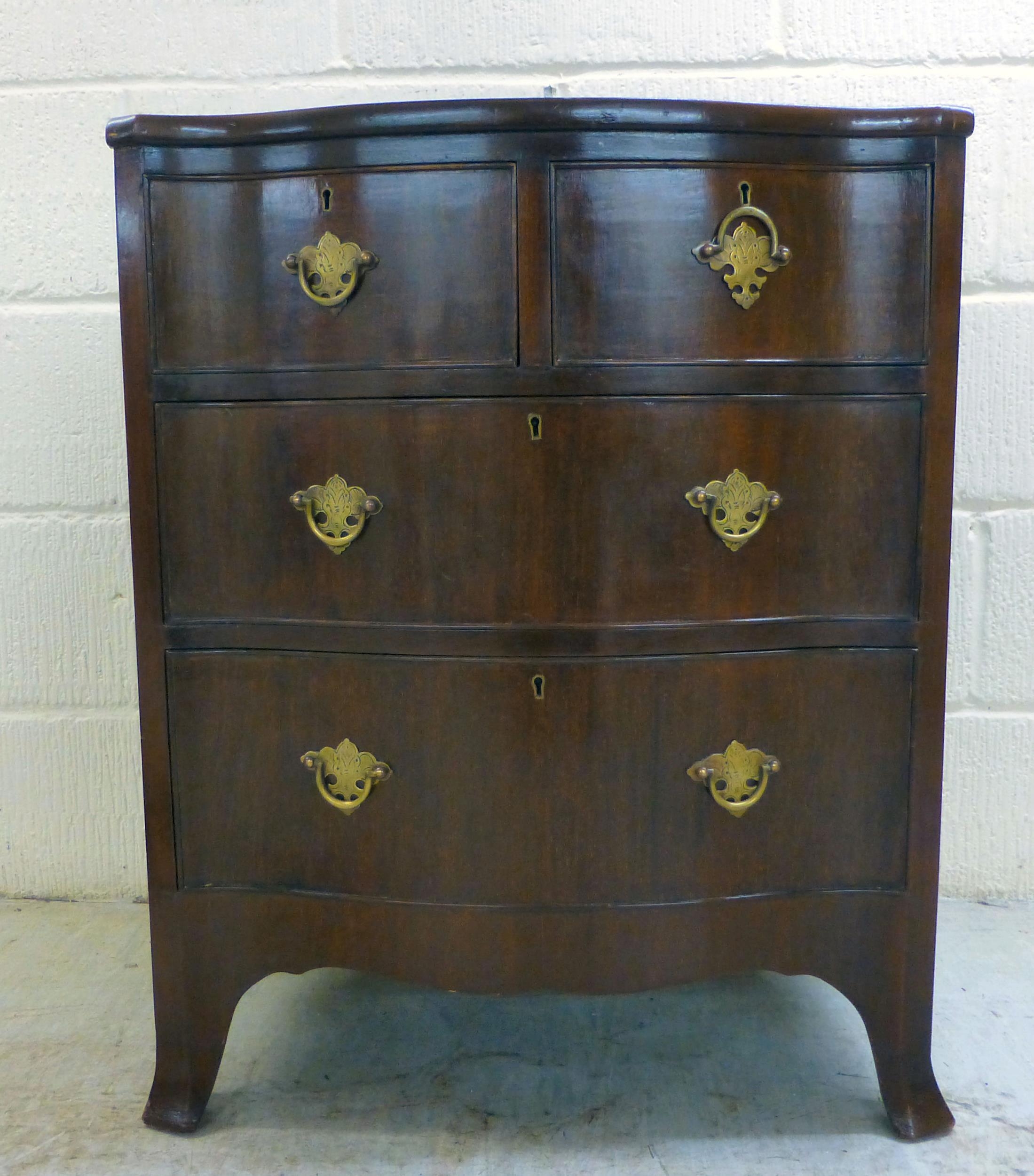 A late 19thC mahogany serpentine front, four drawer dressing chest, raised on bracket feet 30"h 25"w