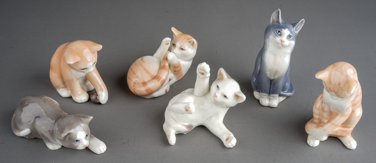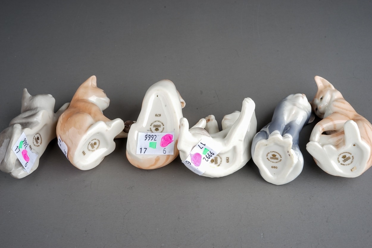 A group of six Royal Copenhagen mini collection cats to include pattern no: 677, 679, 680, 682, 686 & 688 (6)