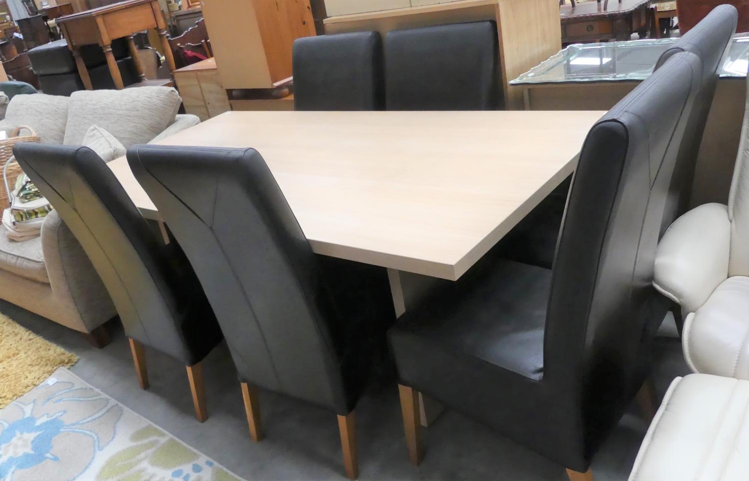 Large Modern Dining Table & 6 Leather Dining Chairs