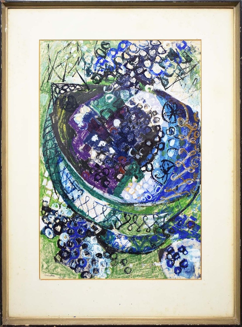 TONI PATTEN (B. 1929). BOWL AND GRAPES. oil on paper, 73cm x 55cm, framed.