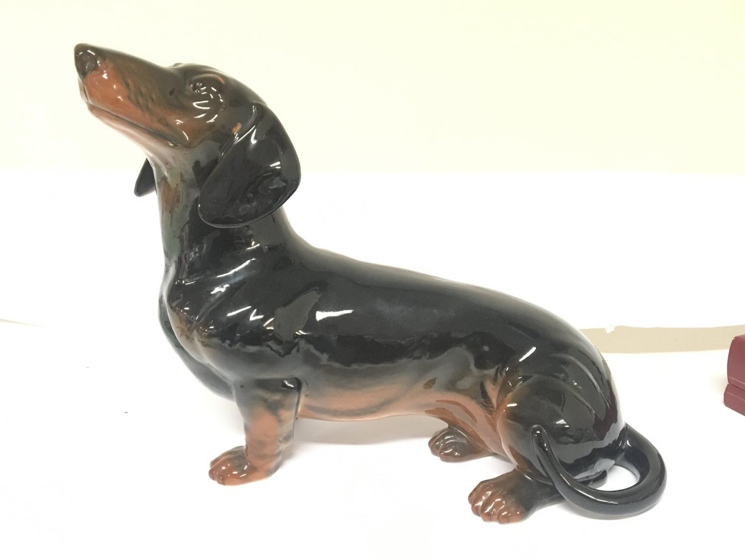 A large size Beswick ceramic figure of a Dachshund dog. No obvious damage or restoration length 38cm approximately. NO RESERVE
