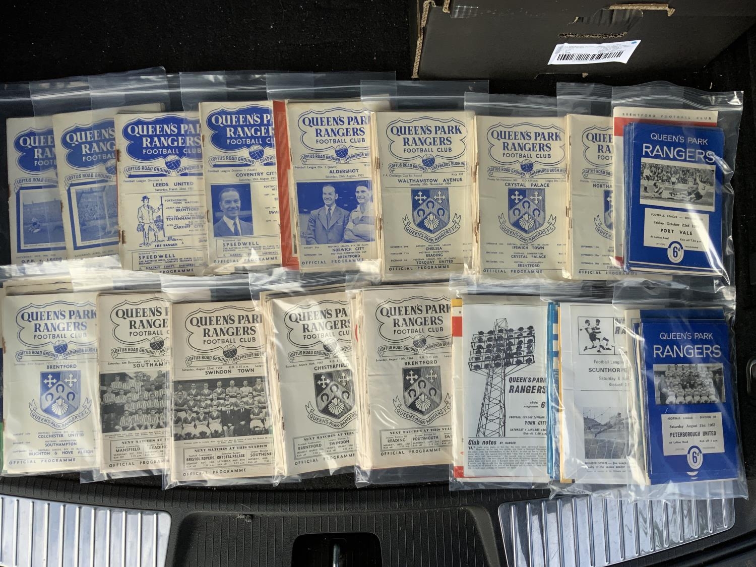 QPR Home Football Programme Collection: From 49/50 to 66/67 in good condition. 49/50 x 13, 50/51 x 13, 51/52 x 5, 53/54 x 20, 54/55 x 22 55/56 x 21, 56/57 x 15, 57/58 x 16, 58/59 x 13, 59/60 x 24, 60/61 x 29, 61/62 x 30 then a further 123 up to 66/67. (364)