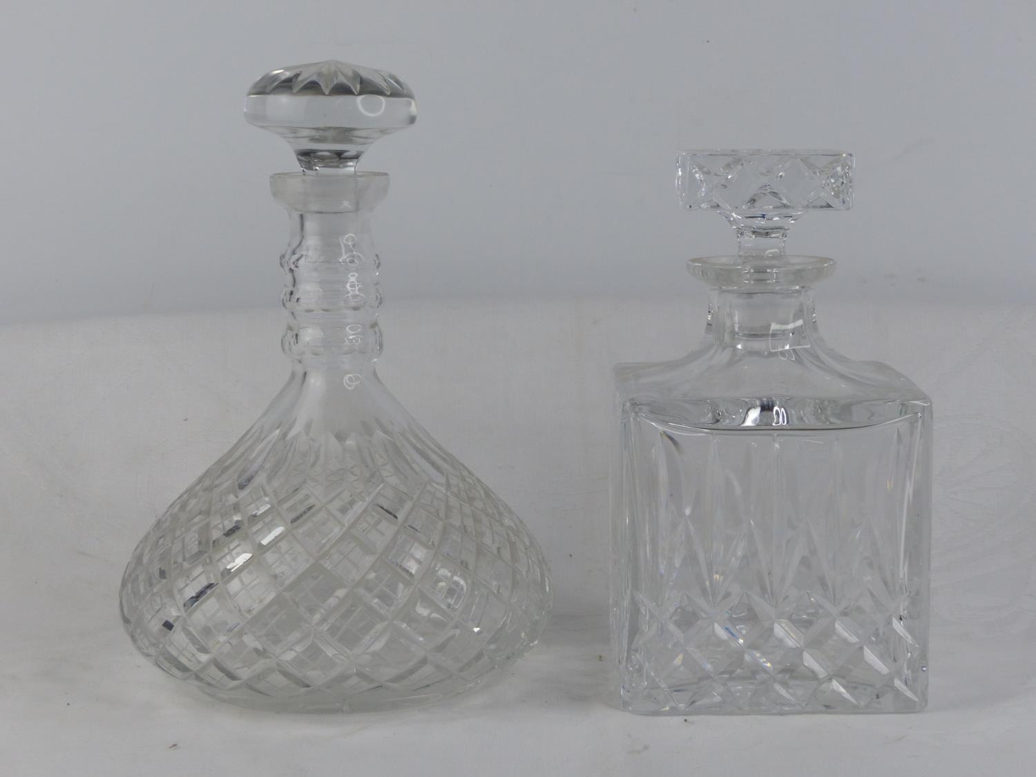 Two cut glass decanters.
