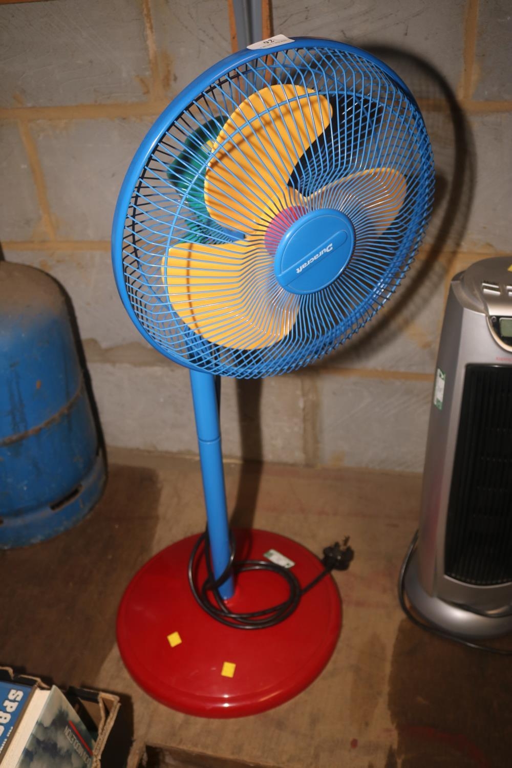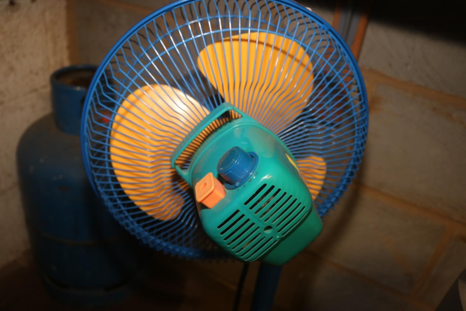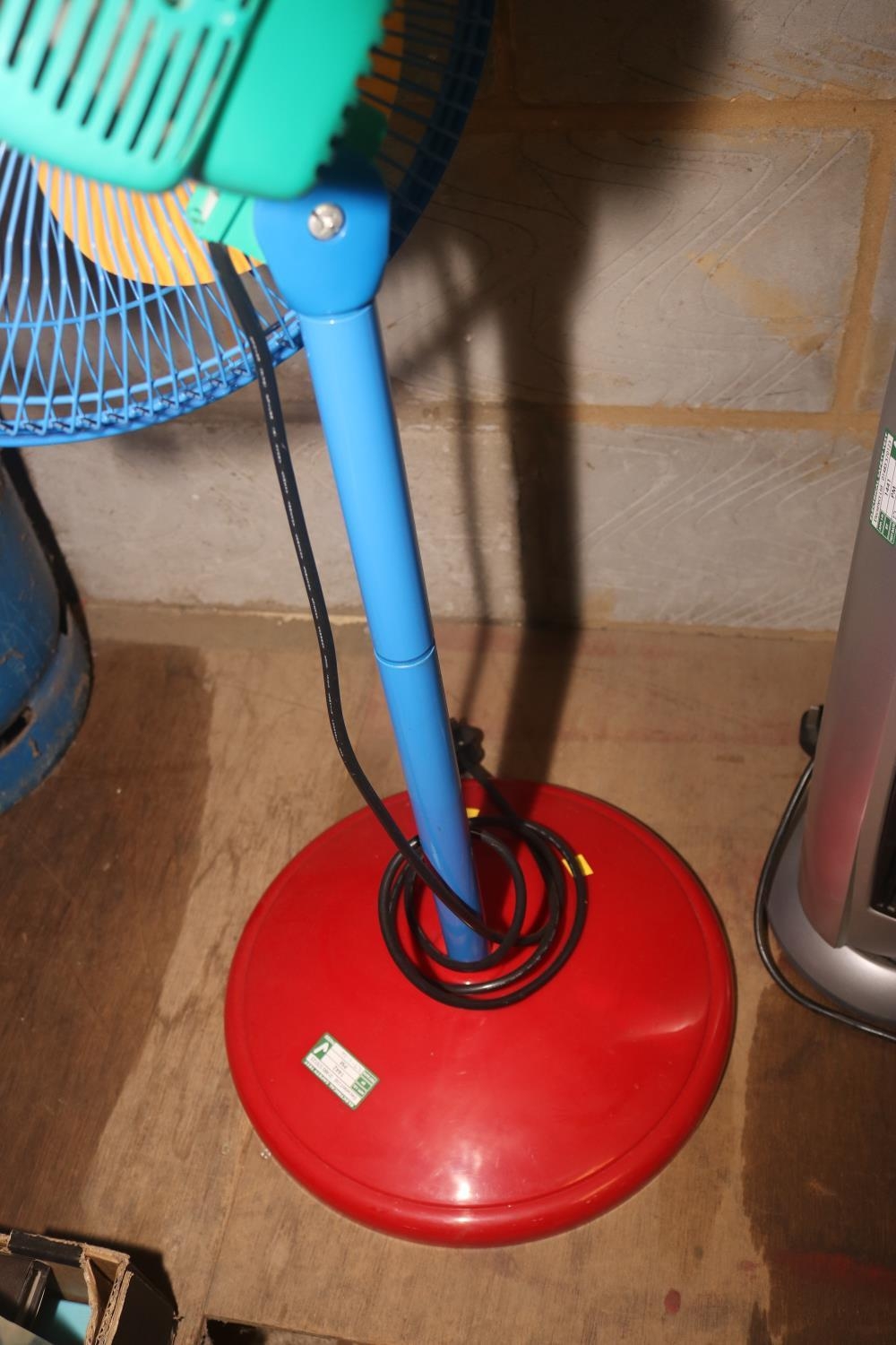 TRI - COLOUR FLOOR STANDING ELECTRIC FAN - WARRANTED UNTIL 12 NOON TUESDAY FOLLOWING THE ABOVE SALE