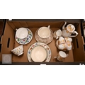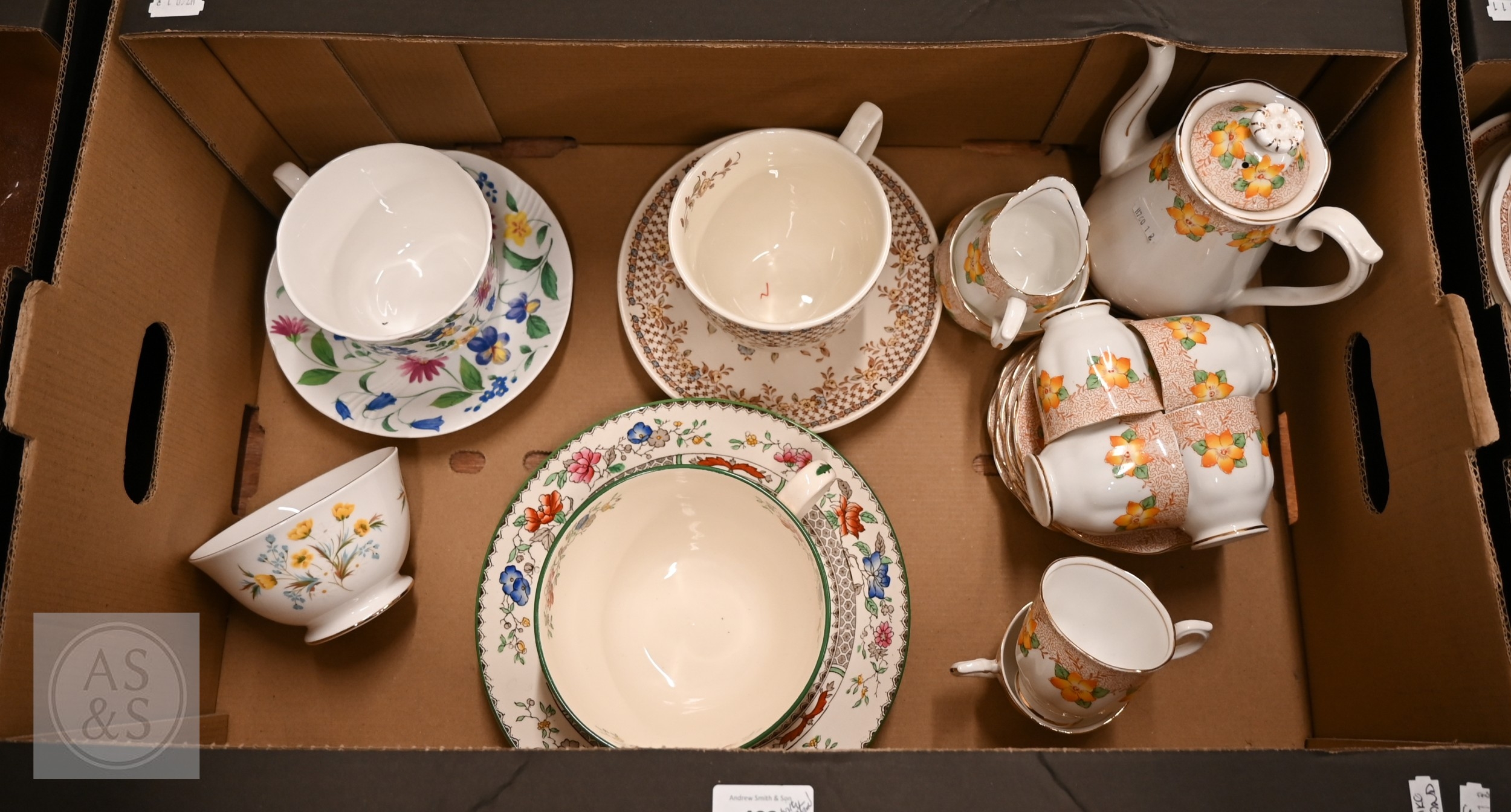 A Royal Albert floral-printed coffee service, to/w antique Copeland Spode 'Chinese Rose' tea cups and saucers, etc (box); lot also includes an oak folding cake stand (2)