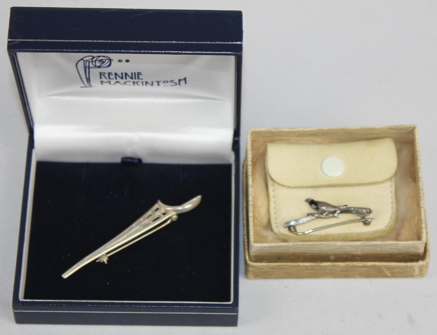 RENNIE MACKINTOSH BROOCH MARKED CJL925 & STERLING SILVER BIRD BROOCH