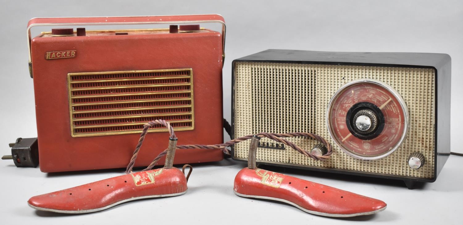 A Vintage Philips Radio, Pair of Electric In shoe Dryers and a Hacker Radio