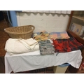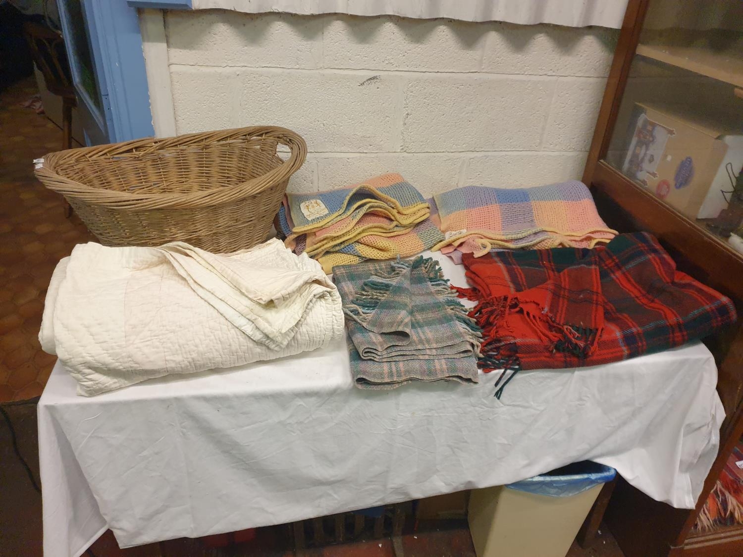 Wicker Basket & Selection of Woollen Blankets & Bed Comforter.