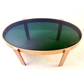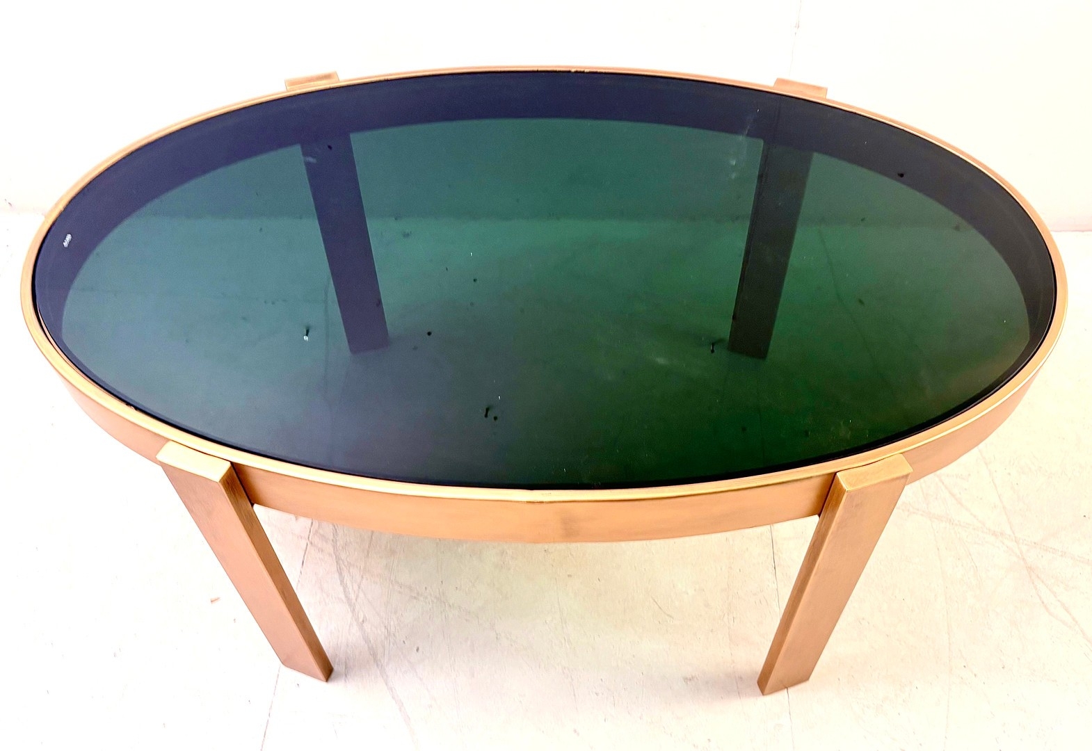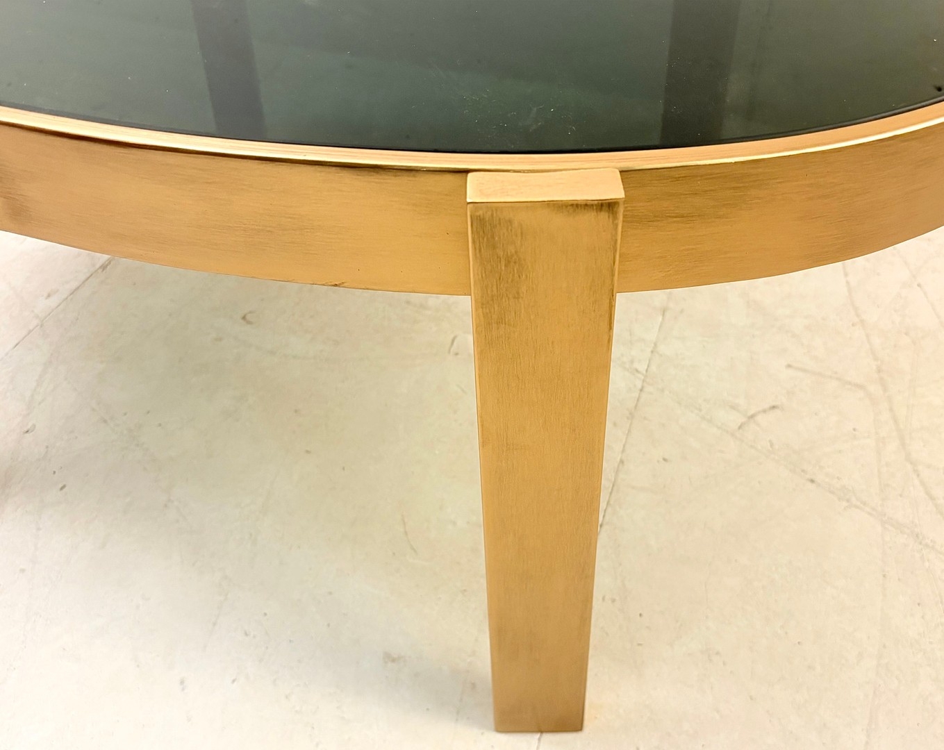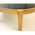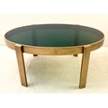 LOW TABLE WITH A GILT METAL FRAME AND SMOKED GLASS TOP. 46cm H x 99cm W x 60cm D.