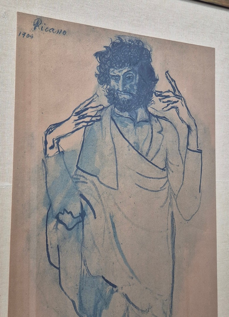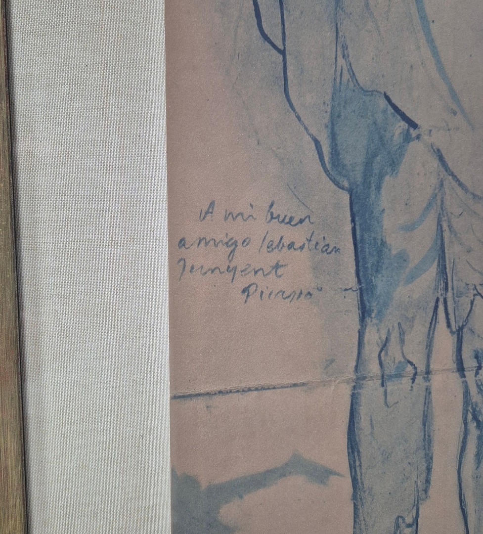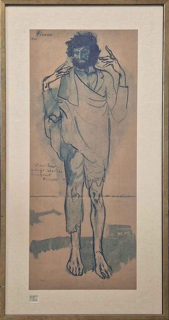 PABLO PICASSO. LE FOU. (d) lithograph & pochoir, 79cm x 32cm, signed in the plate, 1963, pencil numbered edition: 500, printed by Jacomet, Les Bleus de Barcelona,Framed (Subject to ARR - see Buyers Conditions).