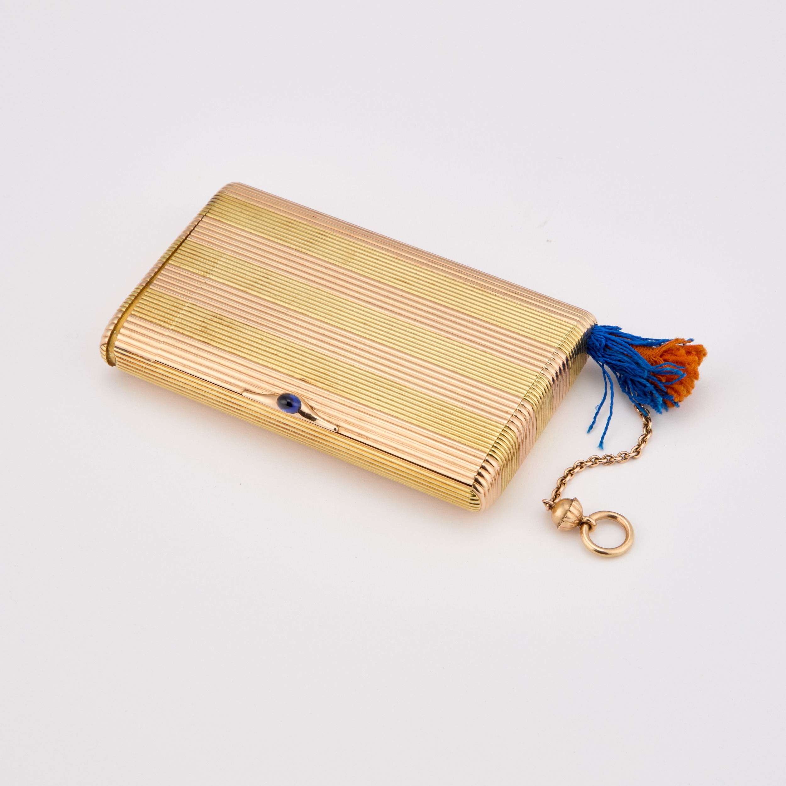 A FINE RUSSIAN BI-COLOUR GOLD CIGARETTE CASE RETAILED BY PERCY EDWARDS & CO, 71 & 72 PICCADILLY W.