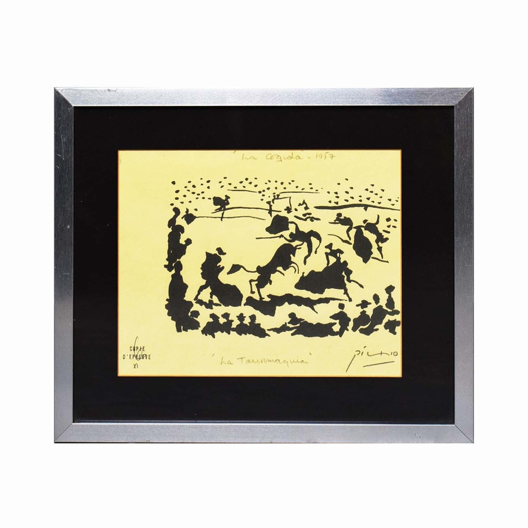 PABLO PICASSO. La Tauromaquia. (d) Lithographic Proof, 19cms x 23.5cms, stamped, with signatures, Framed. (Subject to ARR - see Buyers Conditions).
