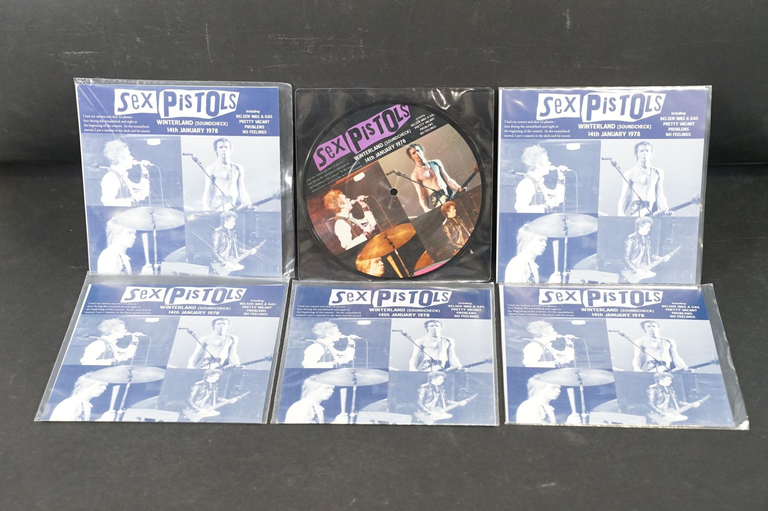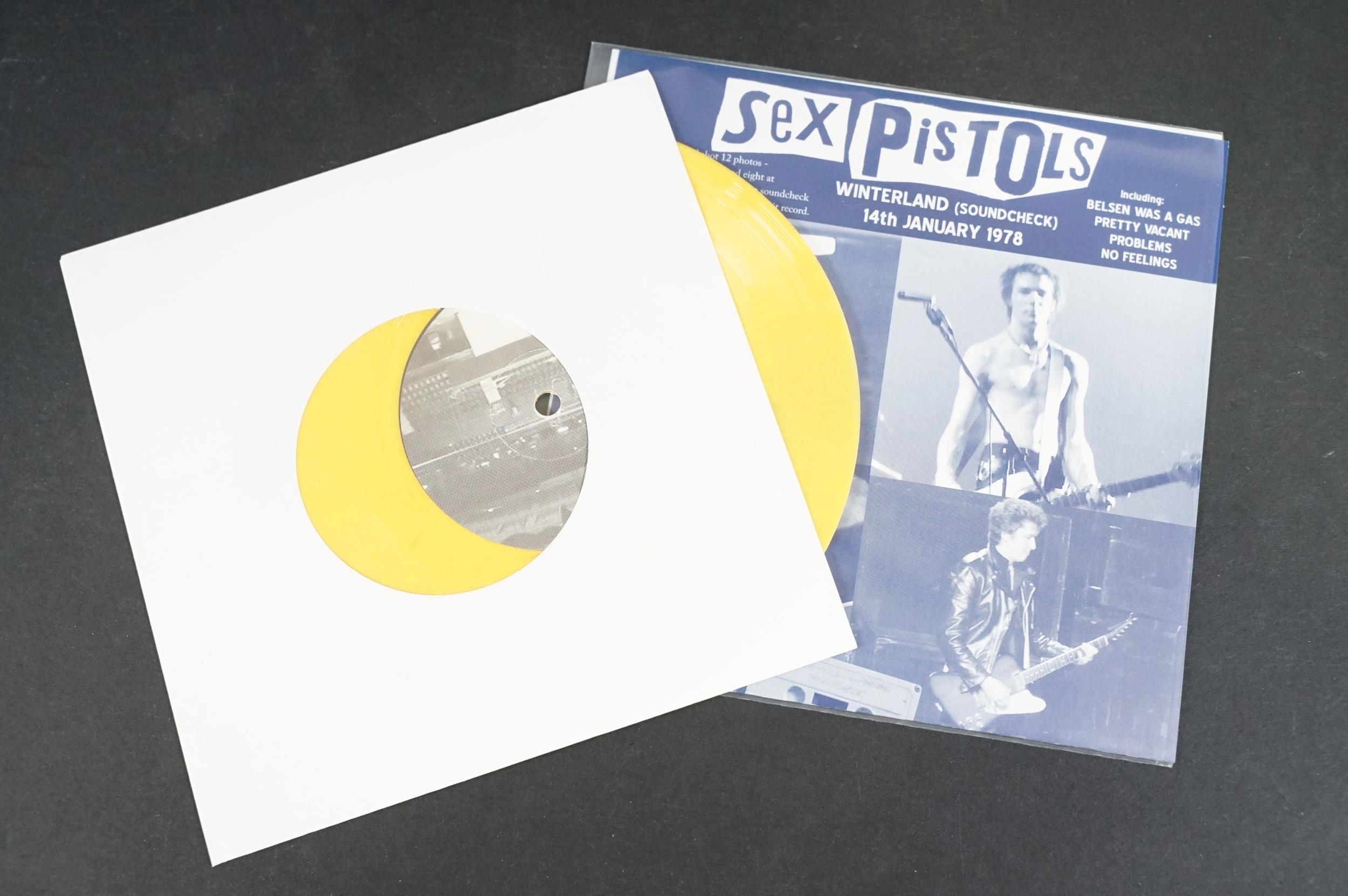 Vinyl - Punk - Sex Pistols, 6 different coloured vinyl UK 2013 7” singles of Winterland (Soundcheck) 14th January 1978, yellow, purple, red, pink blue, and a picture disc, all with picture sleeves