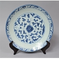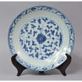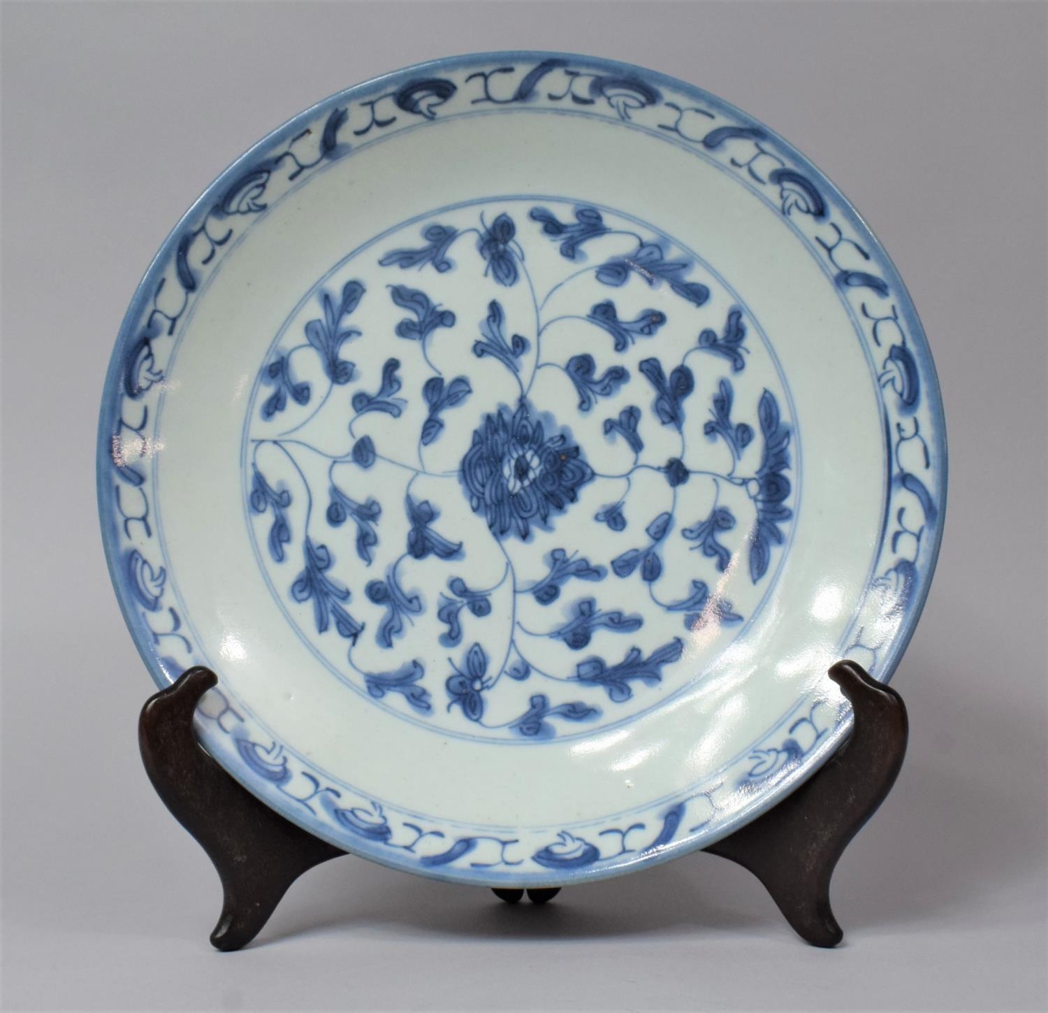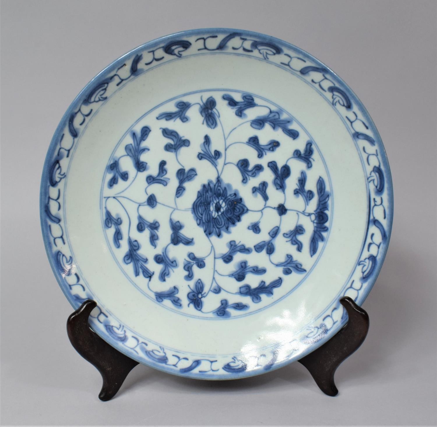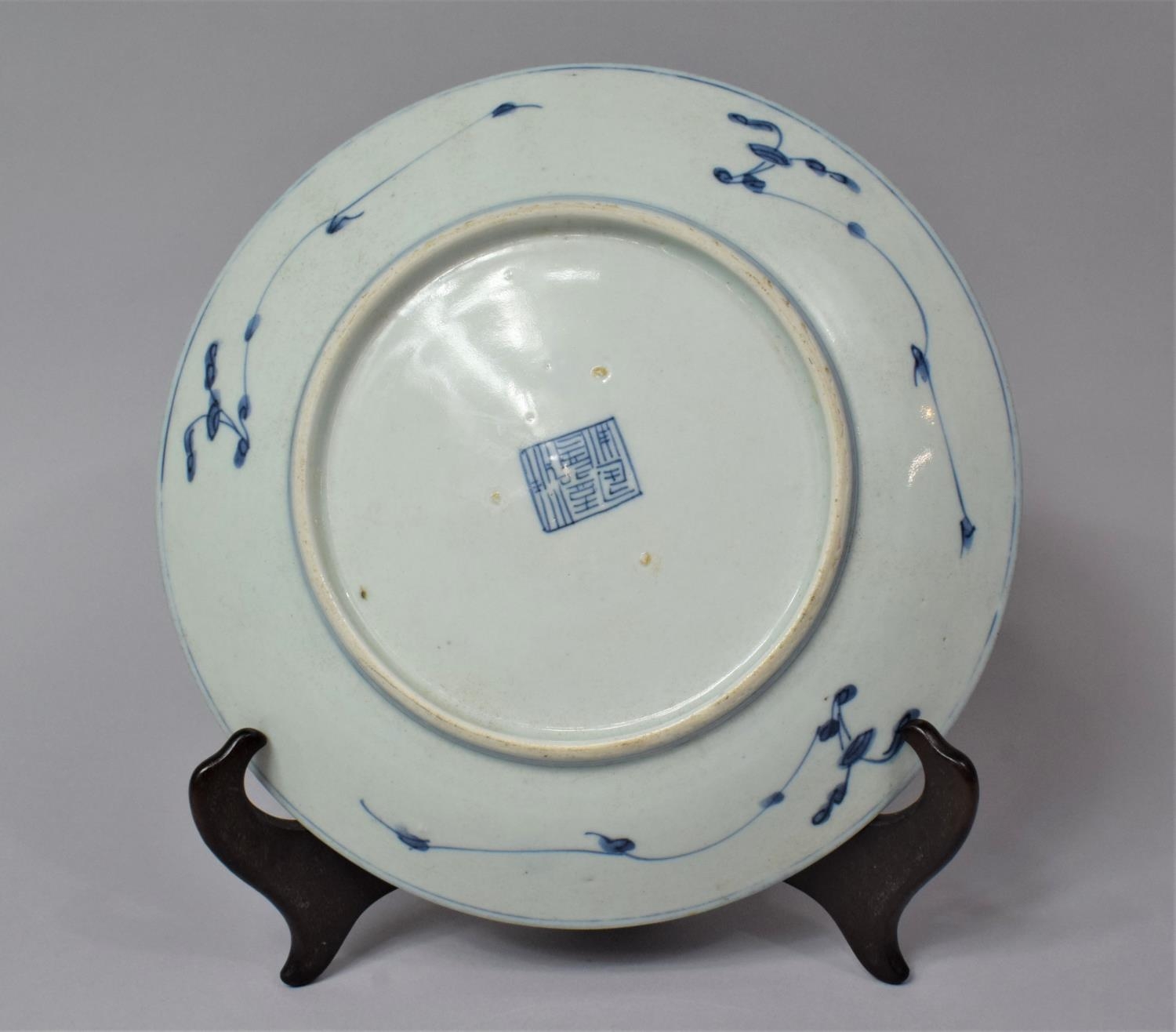 A Japanese Blue and White Plate Decorated with Stylised Floral Decoration to Centre and Border, Shot Mark/Seal Mark to Base, 25.5cm Diameter