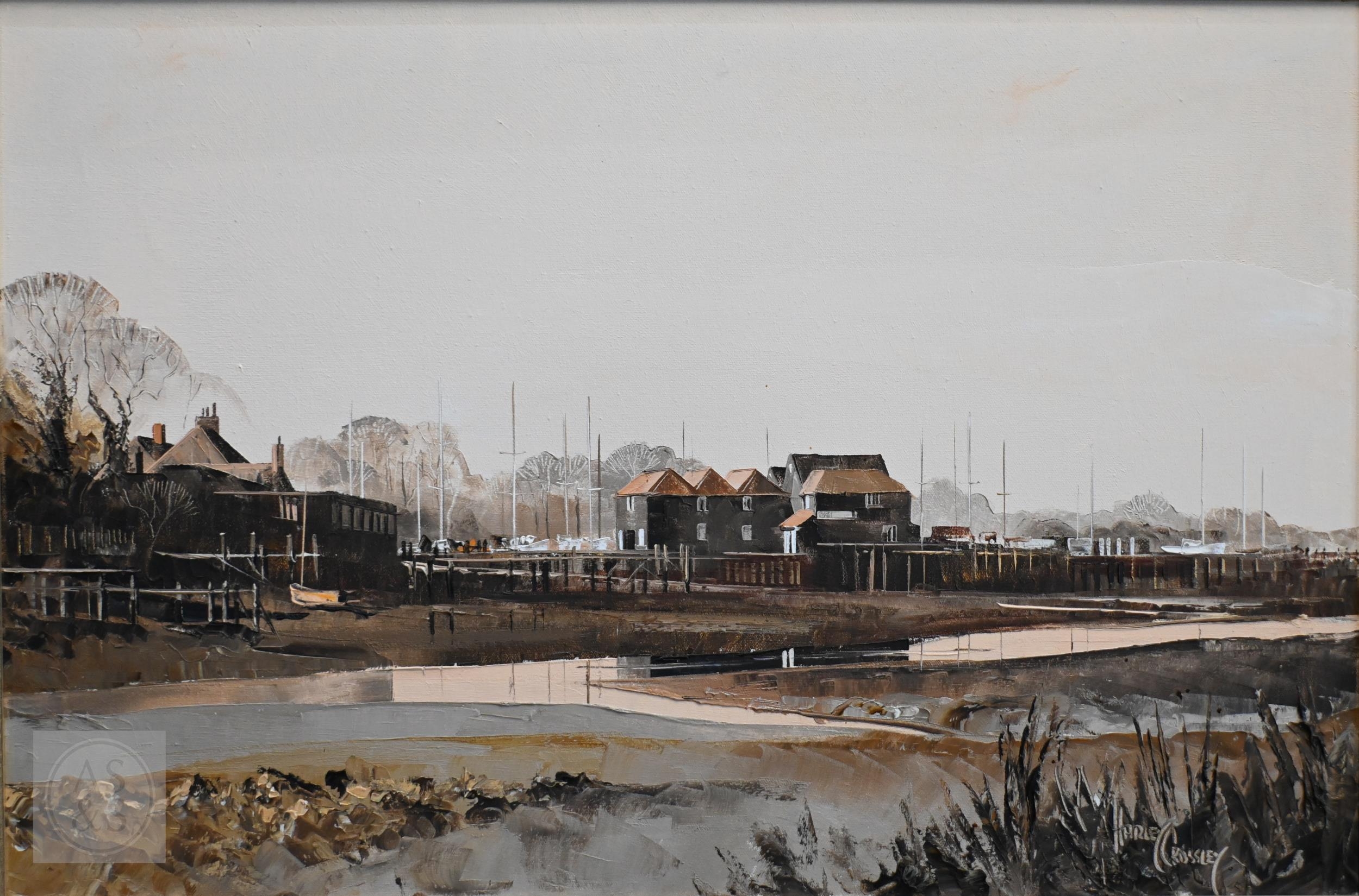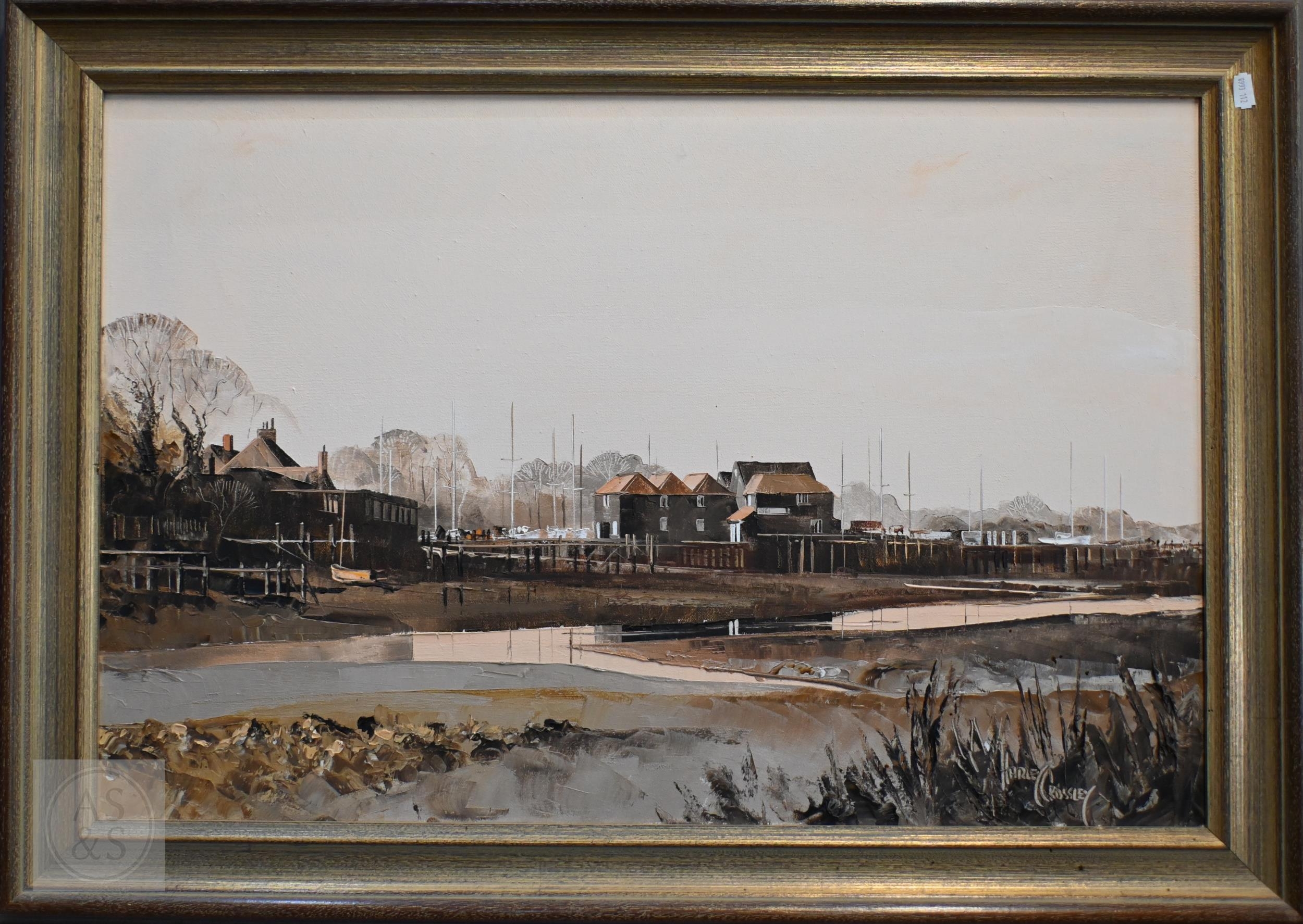 Harley Crossley (1936-2013) - 'Tollard Royal', oil on canvas, signed lower left, 44 x 90 cm and 'Birdham Mill, Chichester Harbour', oil on canvas, signed lower right, 50 x 74 cm (2)