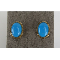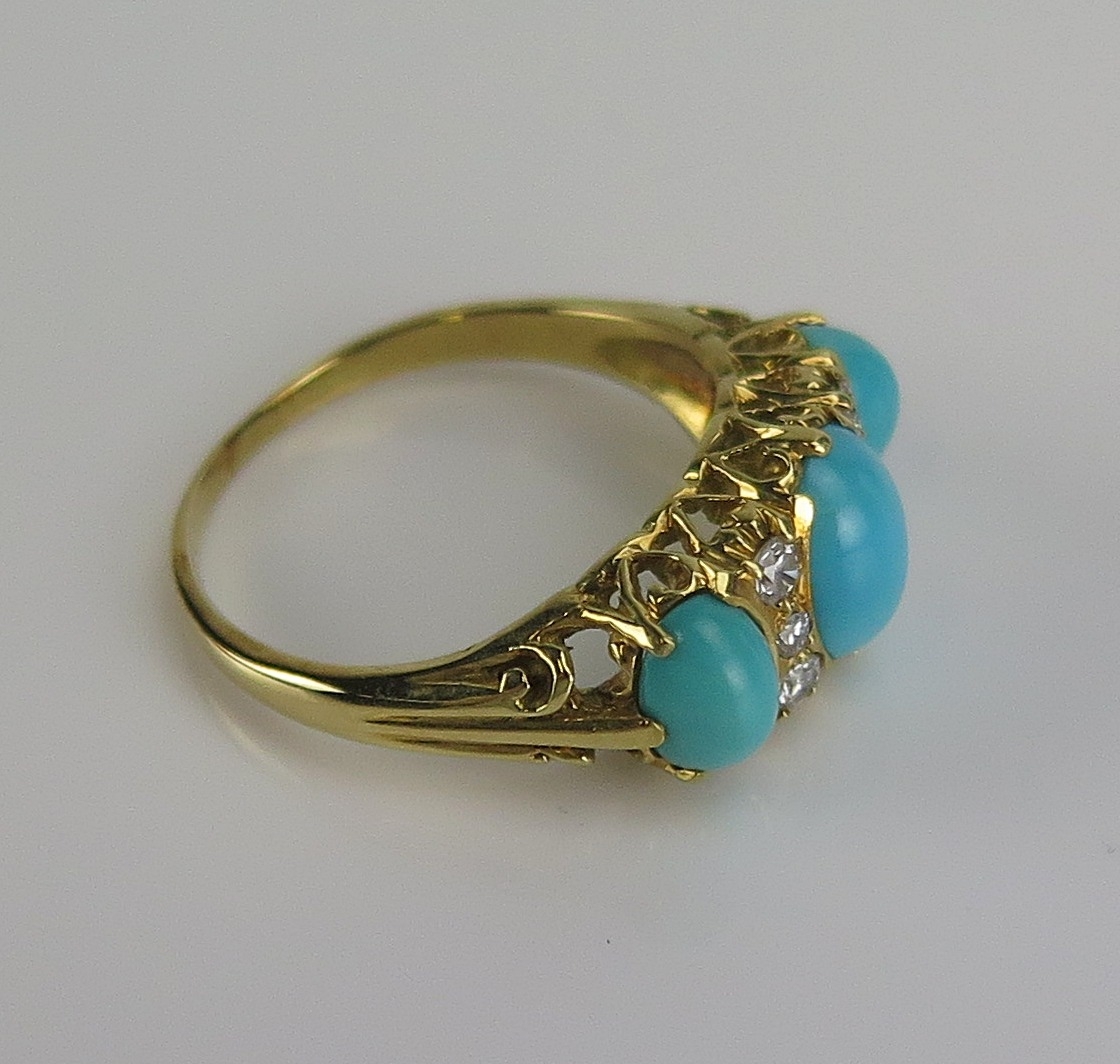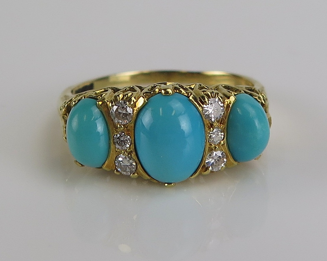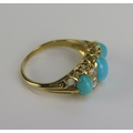 A turquoise and diamond ring in an 18ct yellow gold setting, size S.5, hallmarked, 6.05g. Boxed