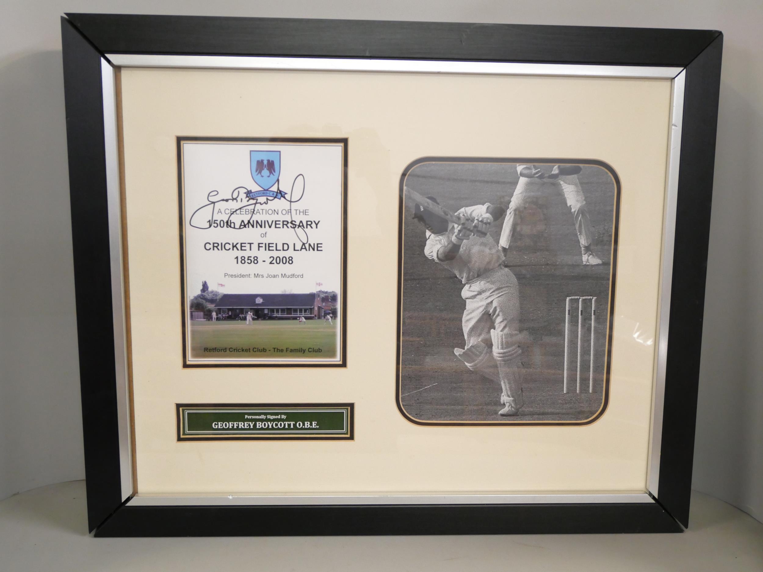 Geoffrey Boycott, signed display, Retford Cricket Club, with certificate