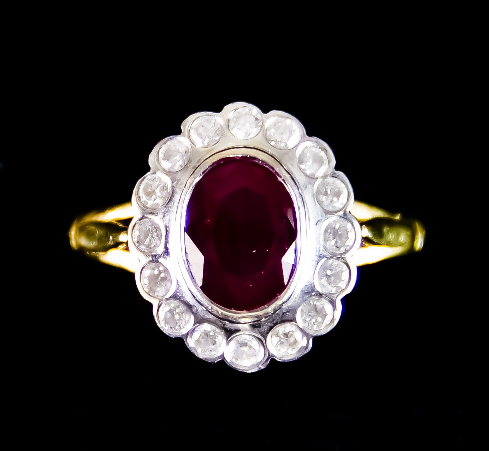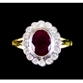An 18ct Gold Ruby and Diamond Ring, set with a centre faceted ruby of approximately 1ct, surrounded by small diamonds, size K, total gross weight 4.2g