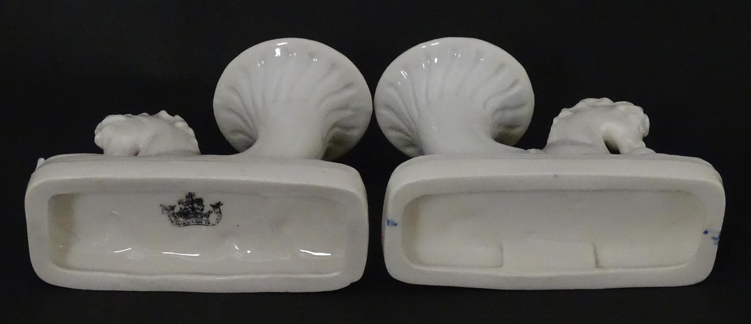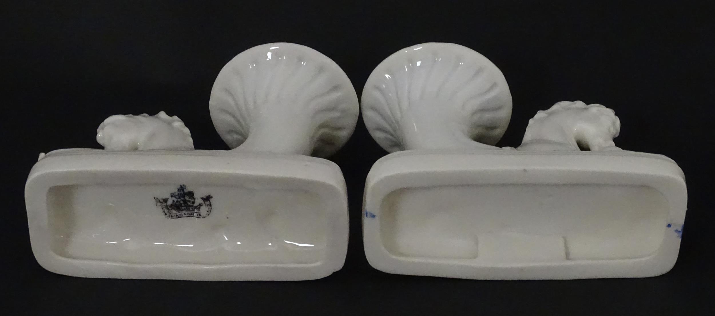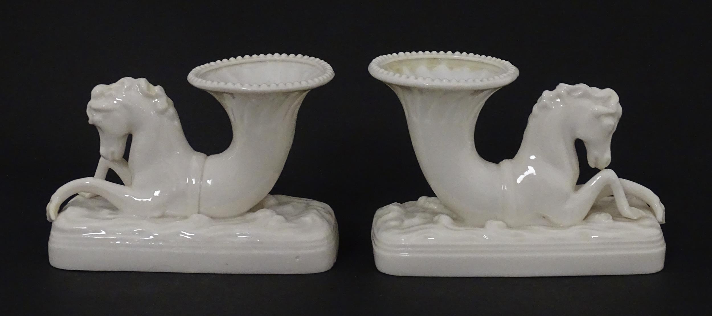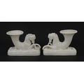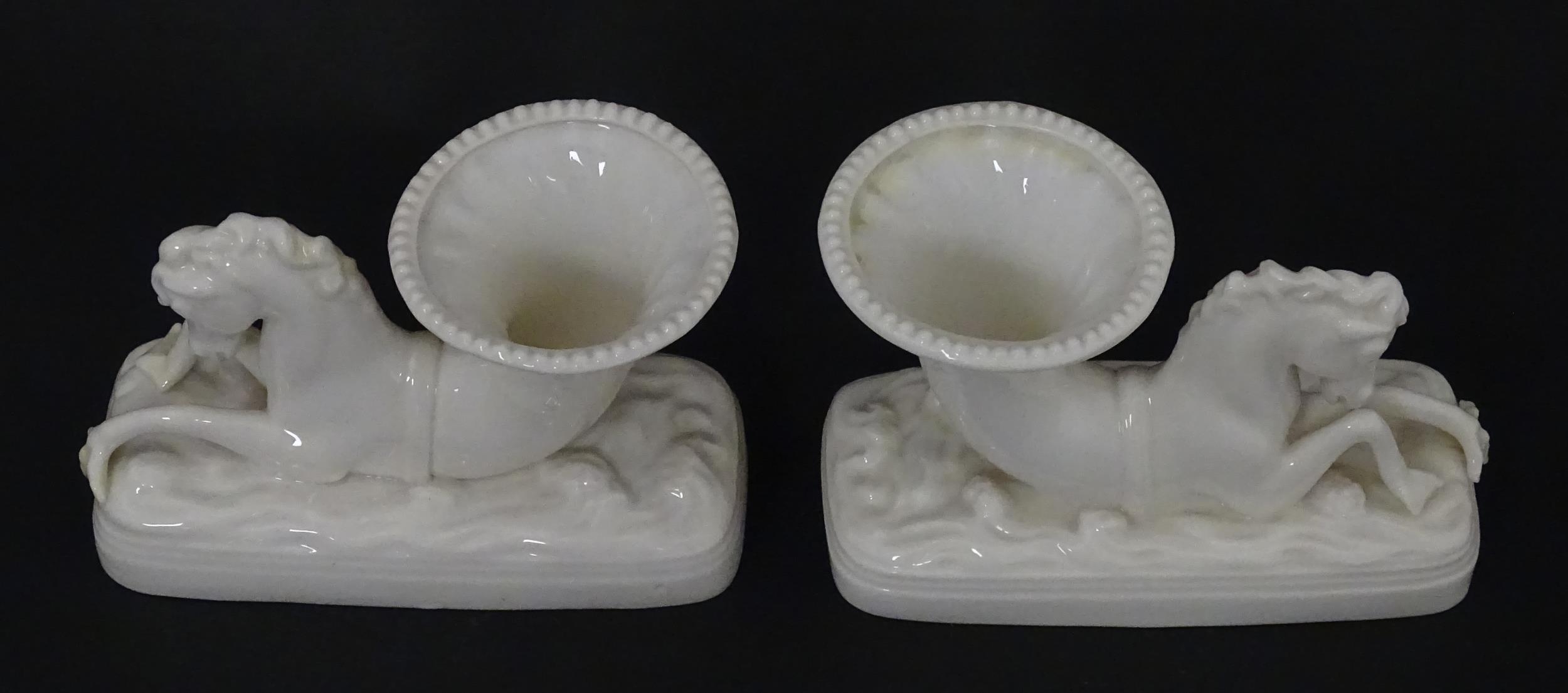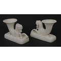 A matched pair of Belleek Seahorse flower holders / vases. One with impressed First Period mark, the other with Second Period mark. Approx. 3 1/4" high (2)