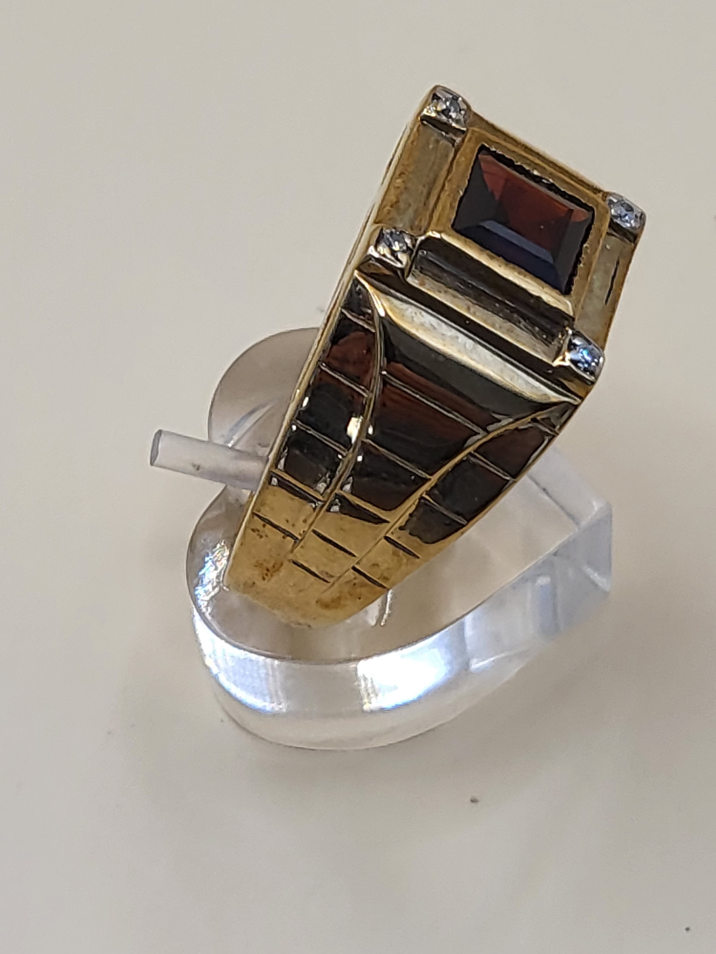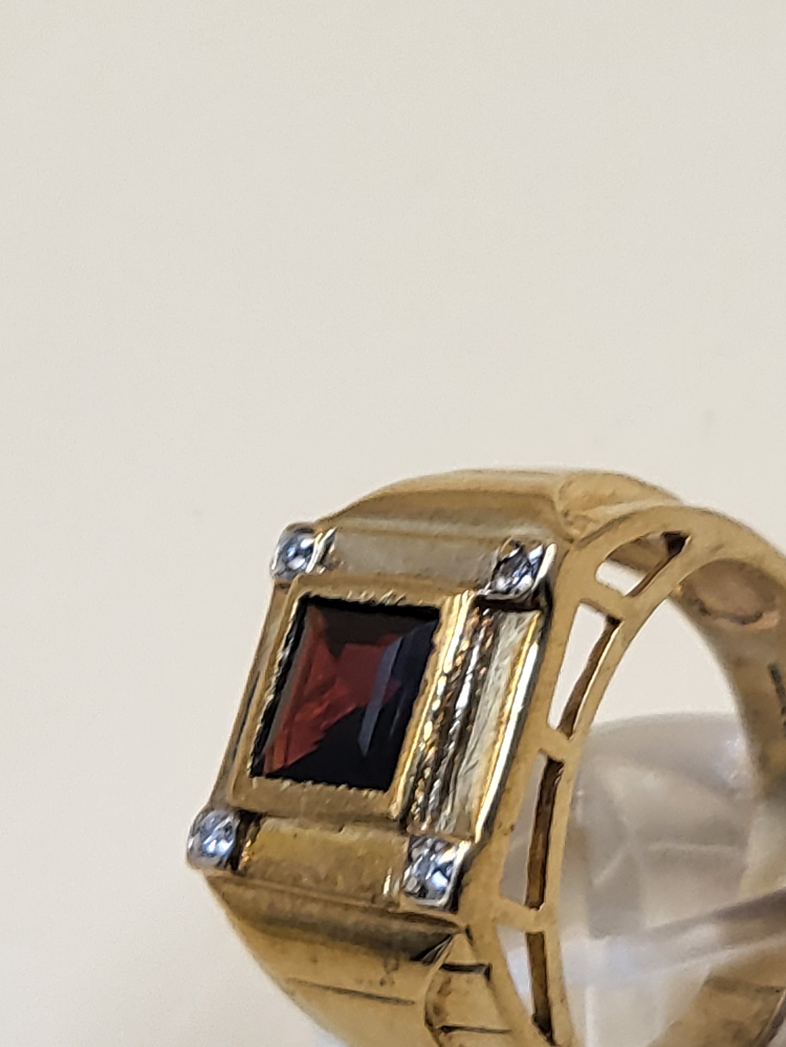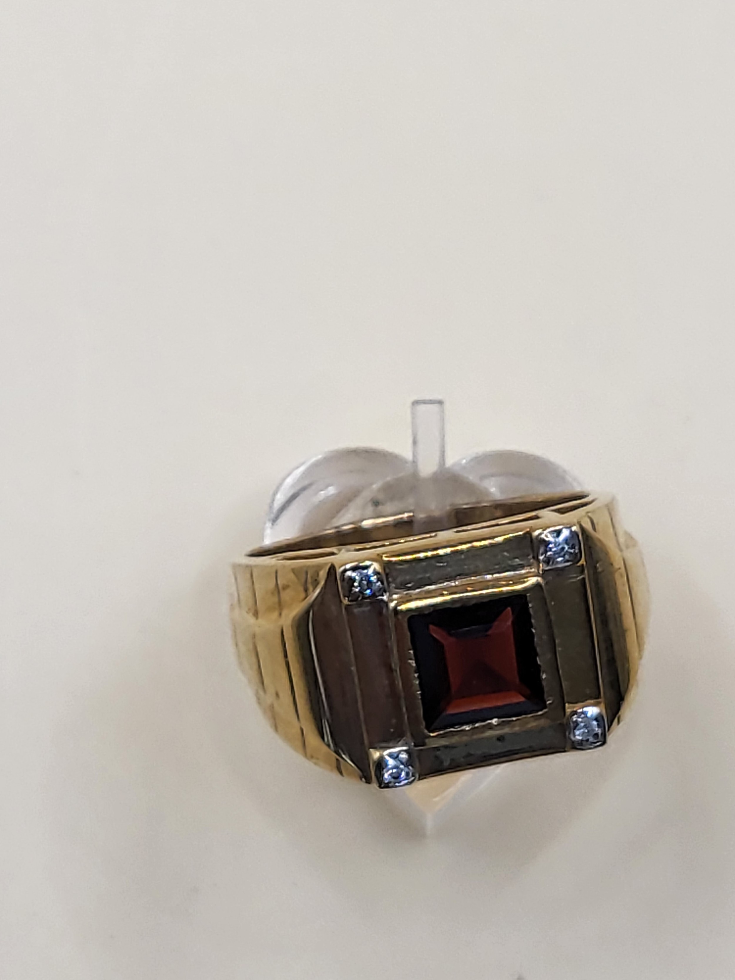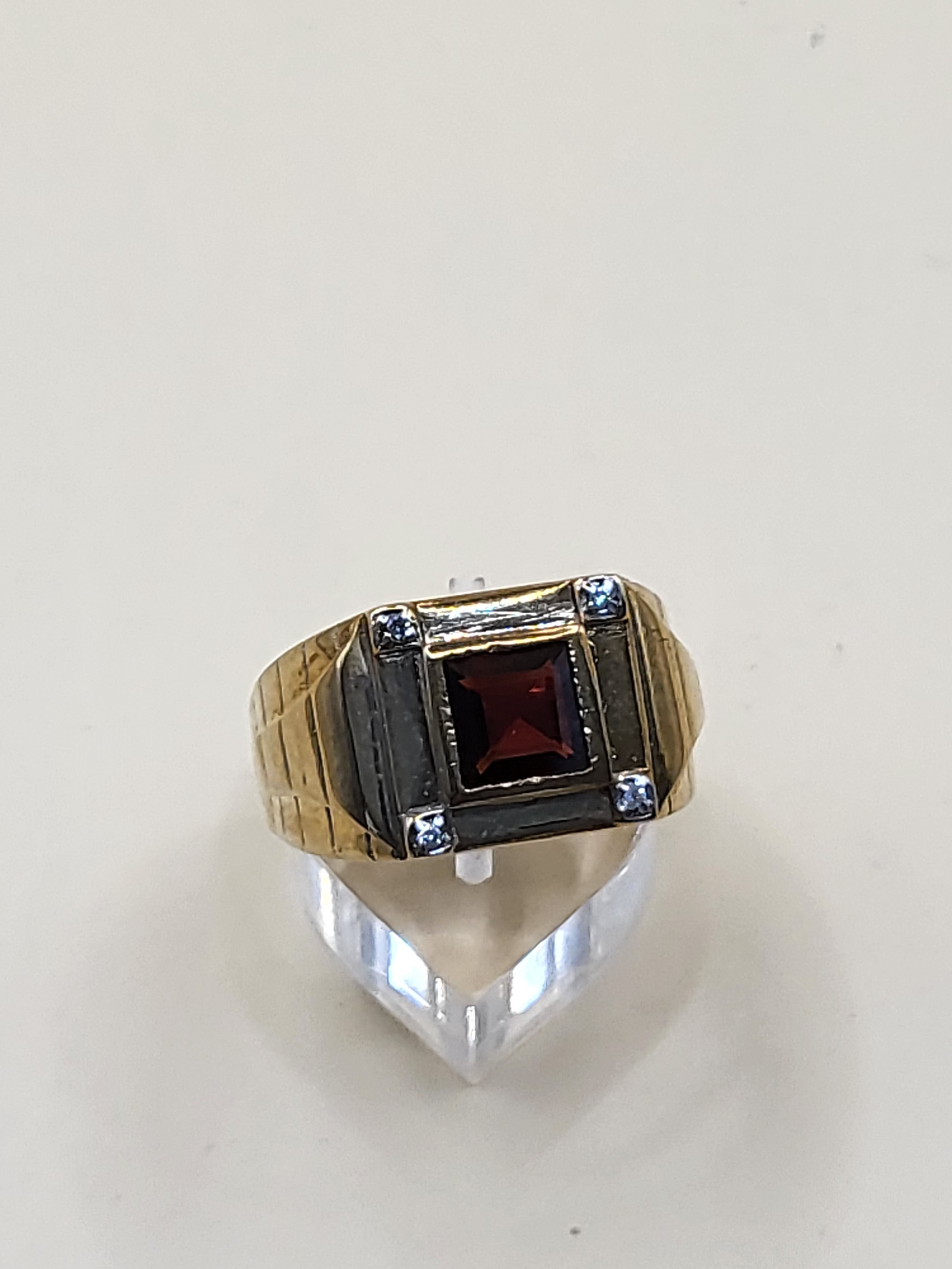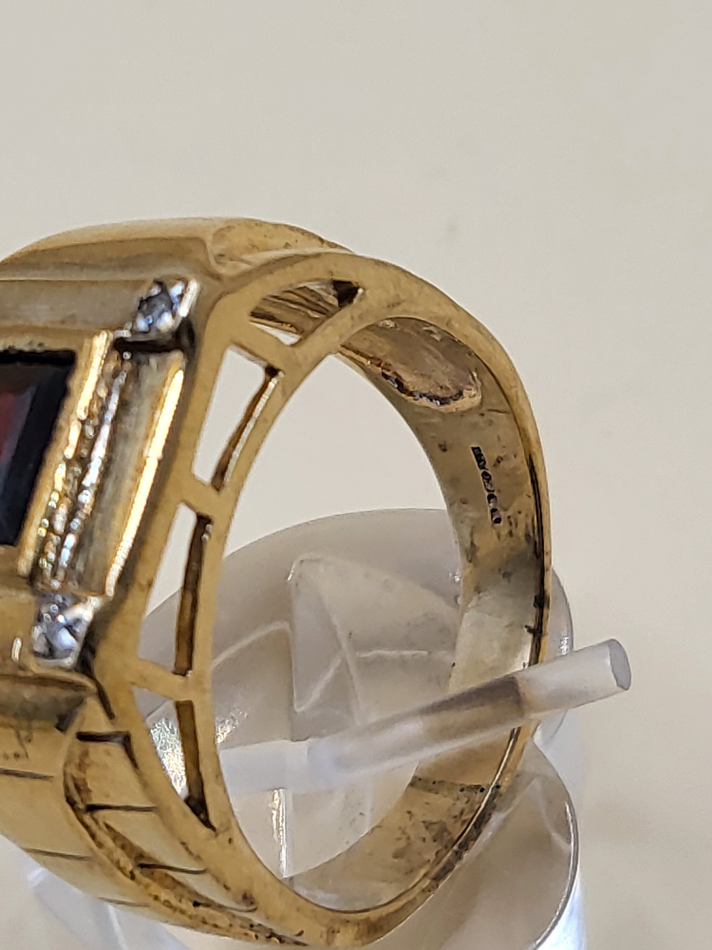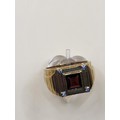 9ct Gold Gent's Garnet & Diamond Ring Size X Weighs 13.4g Fully Hallmarked Nice Condition