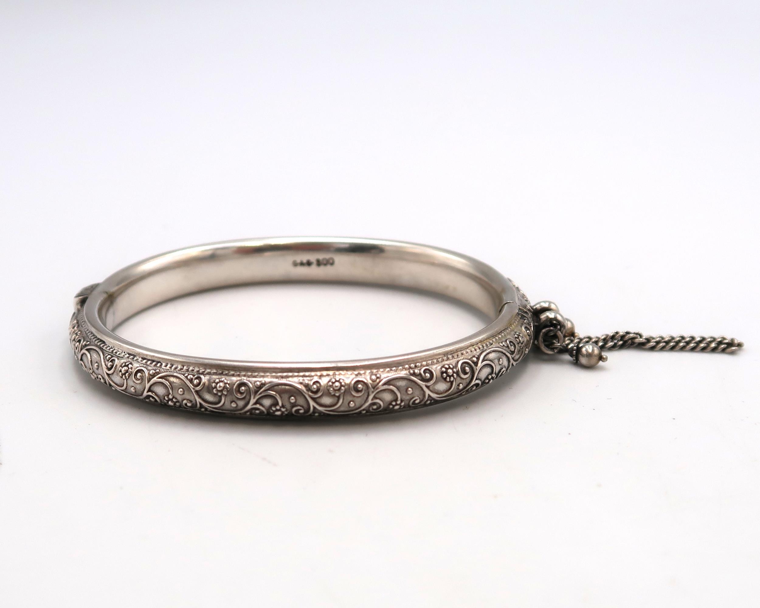 A Finely Engraved Antique Silver Bangle, Internal Dimensions approx. 58mm x 49mm