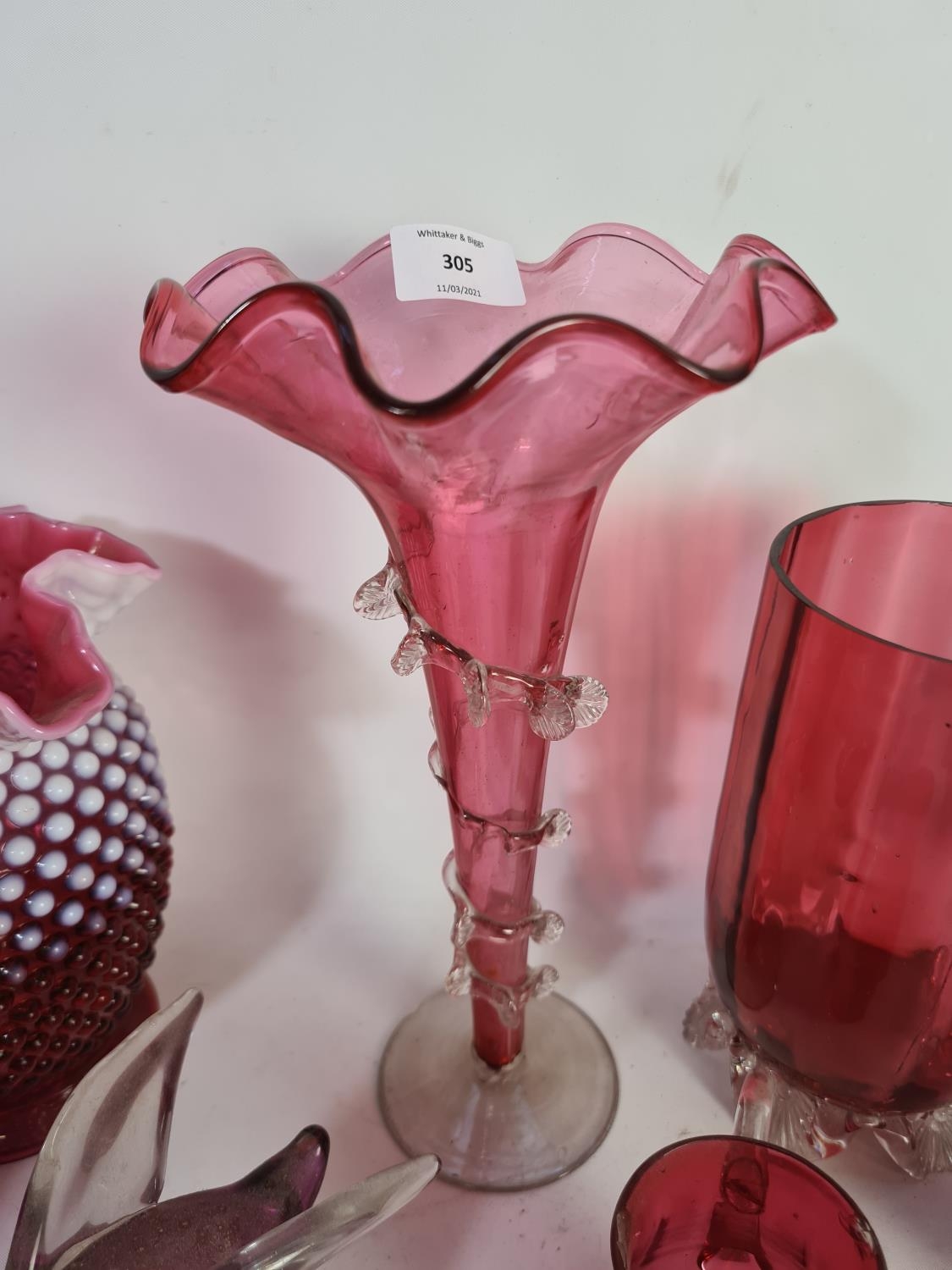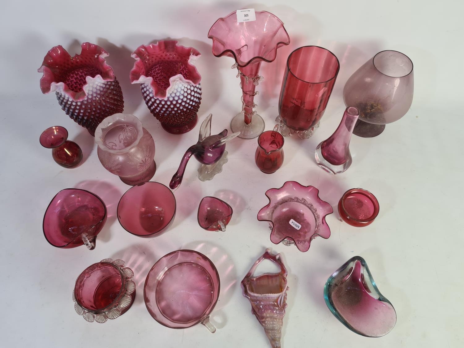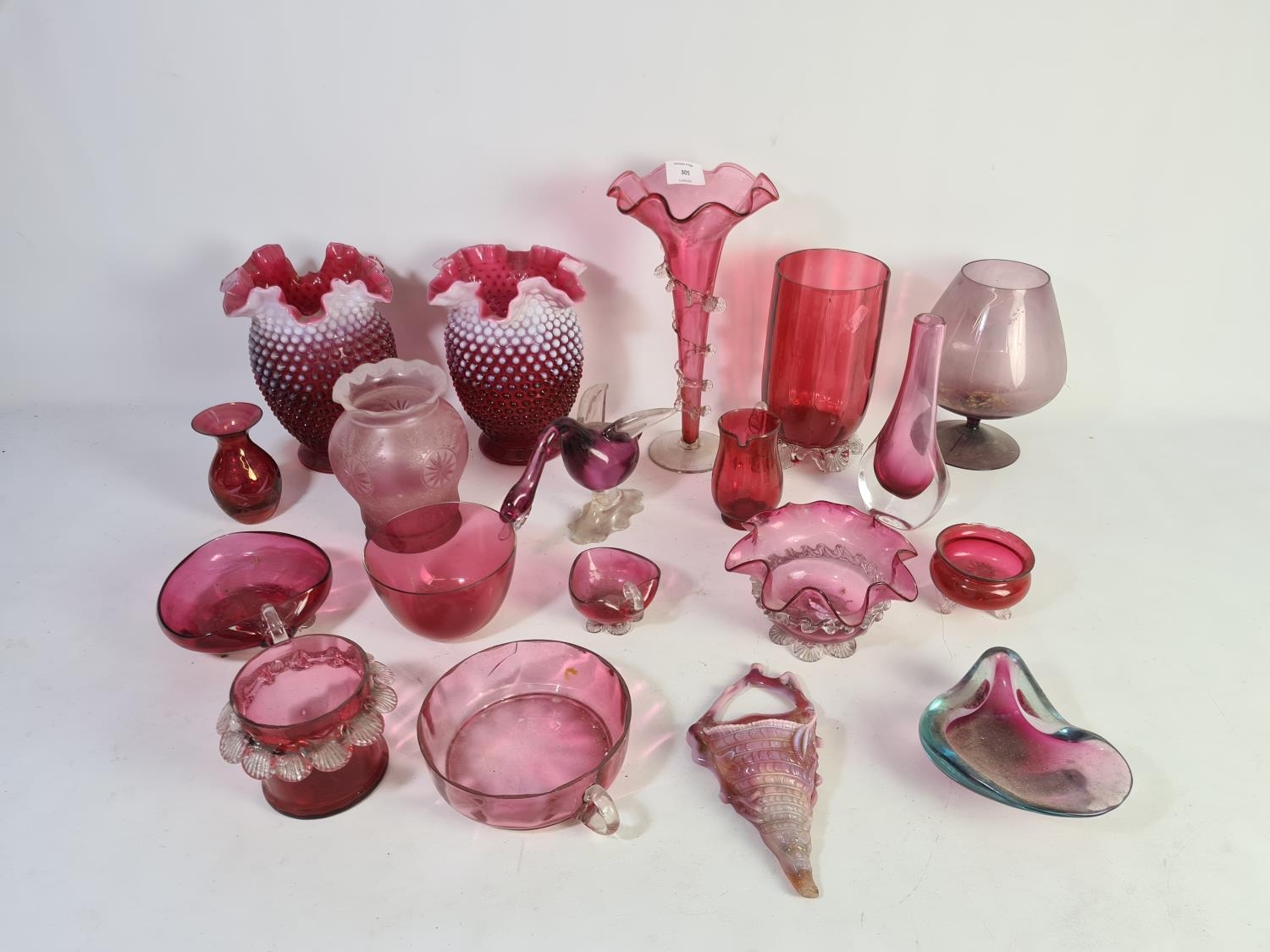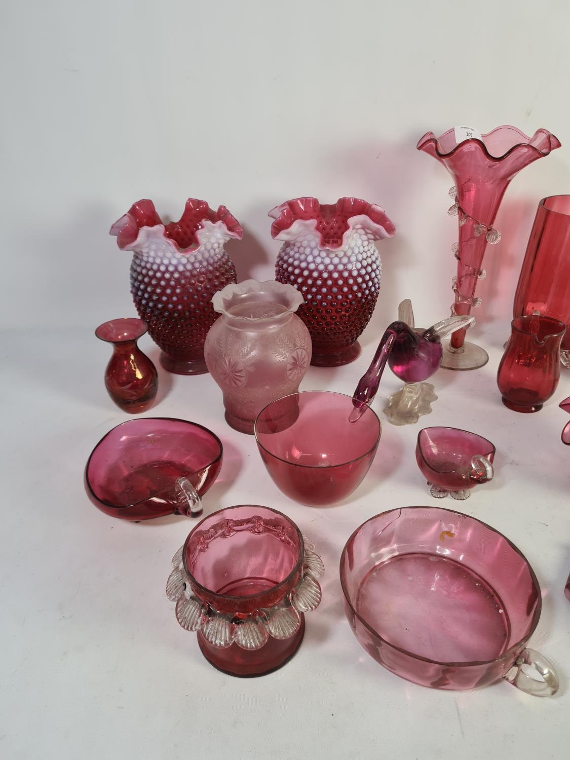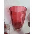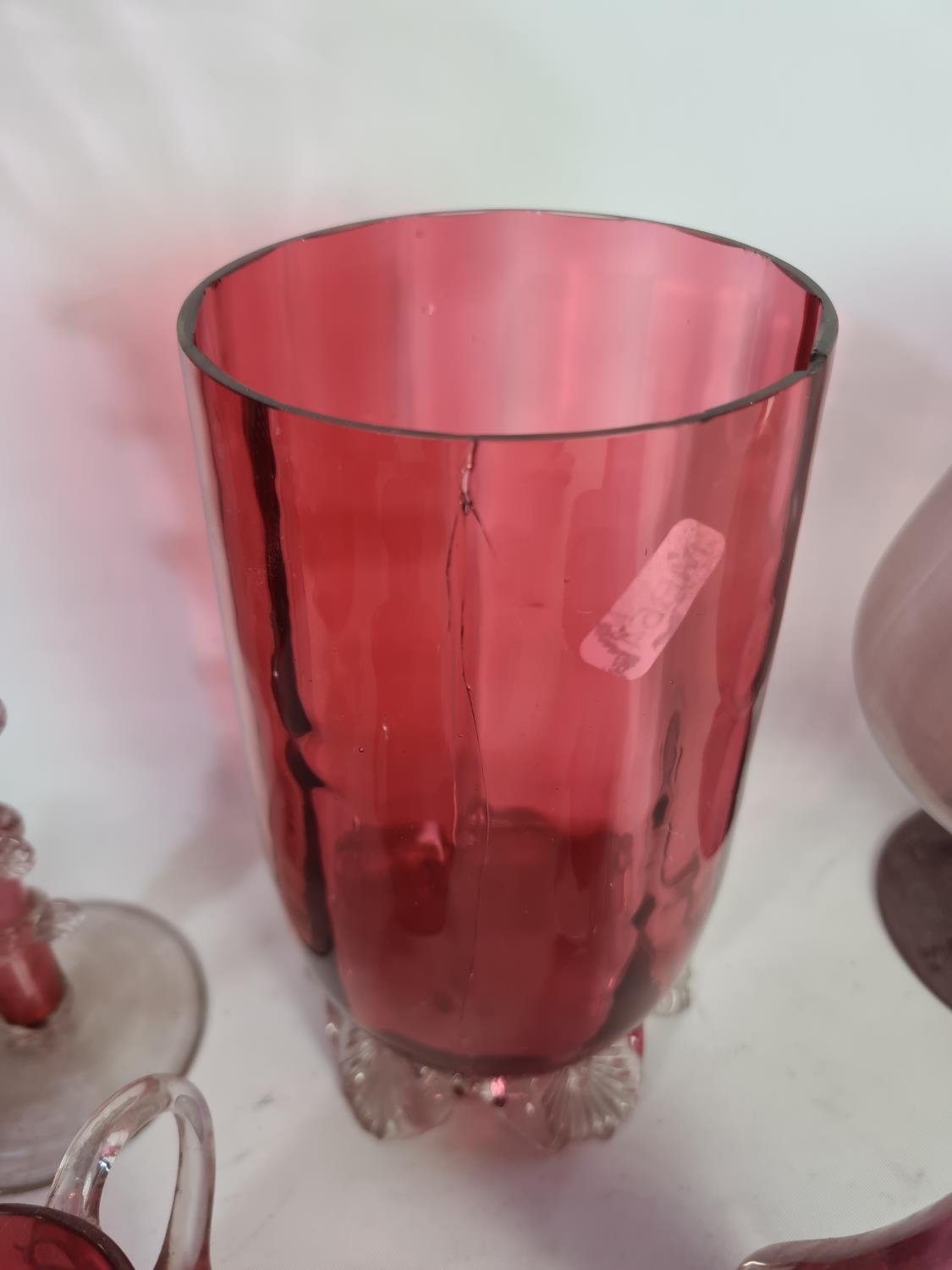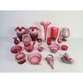 A collection of assorted cranberry glassware