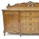 French oak breakfront sideboard with floral carved mouldings, fitted with four central drawers, flanked by a pair of panelled cupboard doors and raised on carved cabriole feet, 125cm high x 119cm wide x 58cm deep