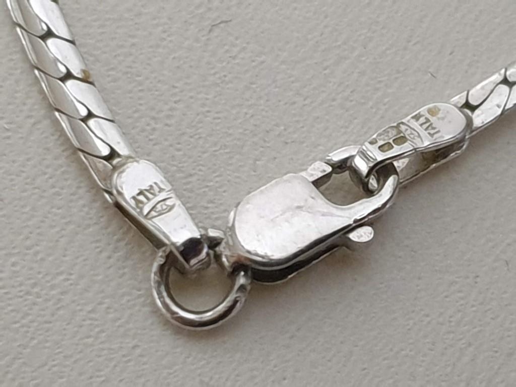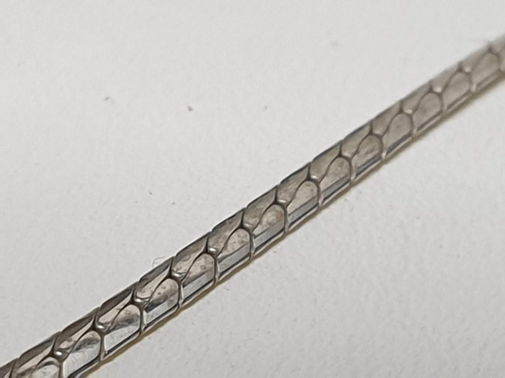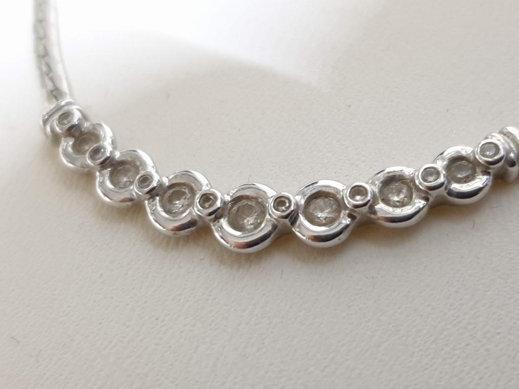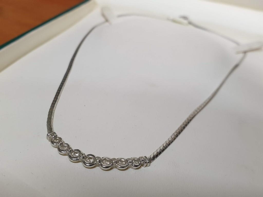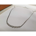 9ct White Gold and Diamond Necklace, Flat Chain with Line of Round Cut Diamonds Lenght:42cm Total Weight 6.1gr Made in Italy