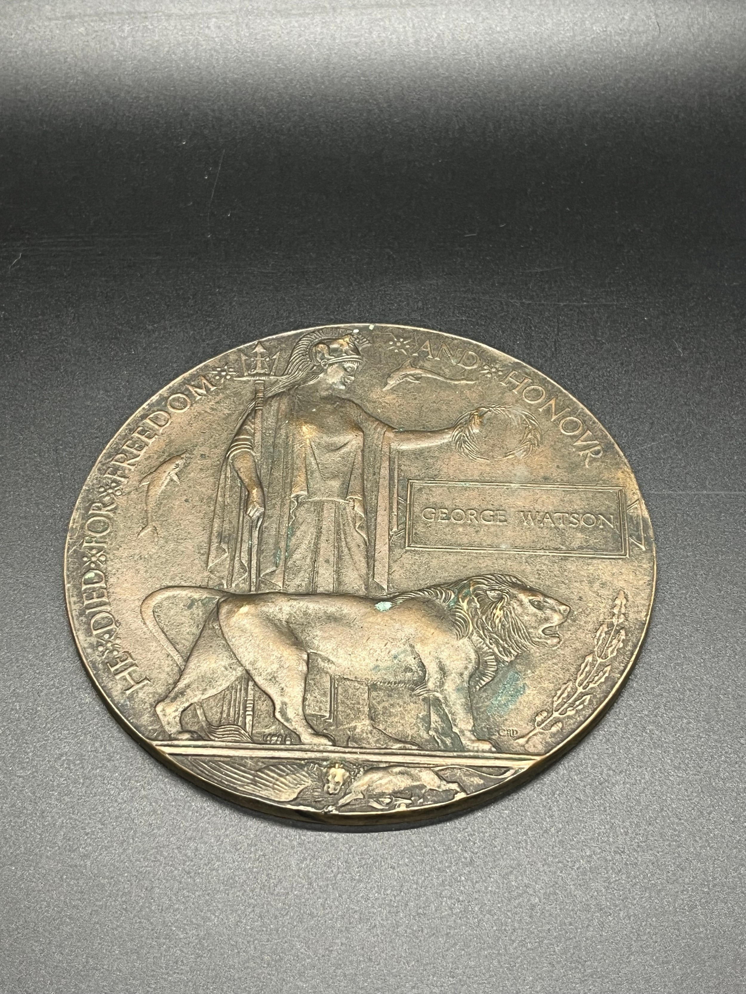 Original WW1 British death plaque penny to George Watson.