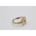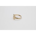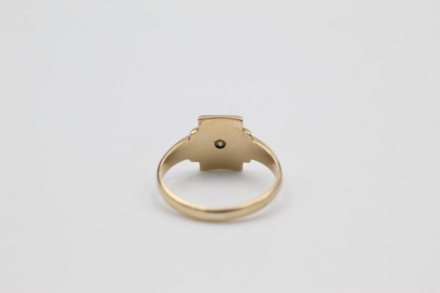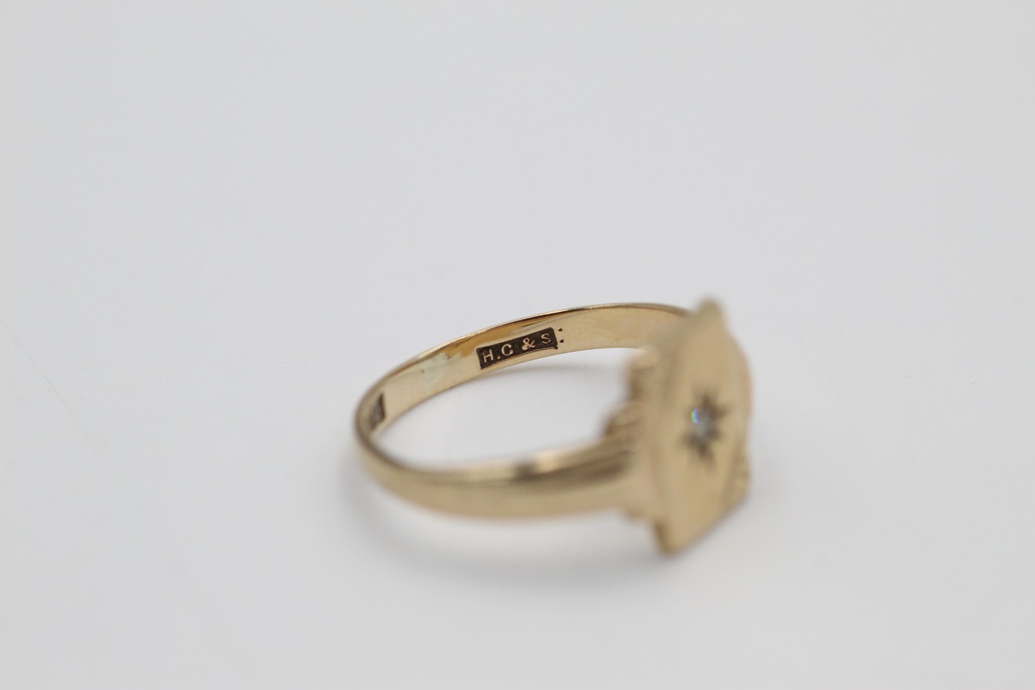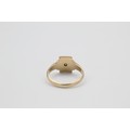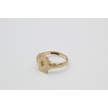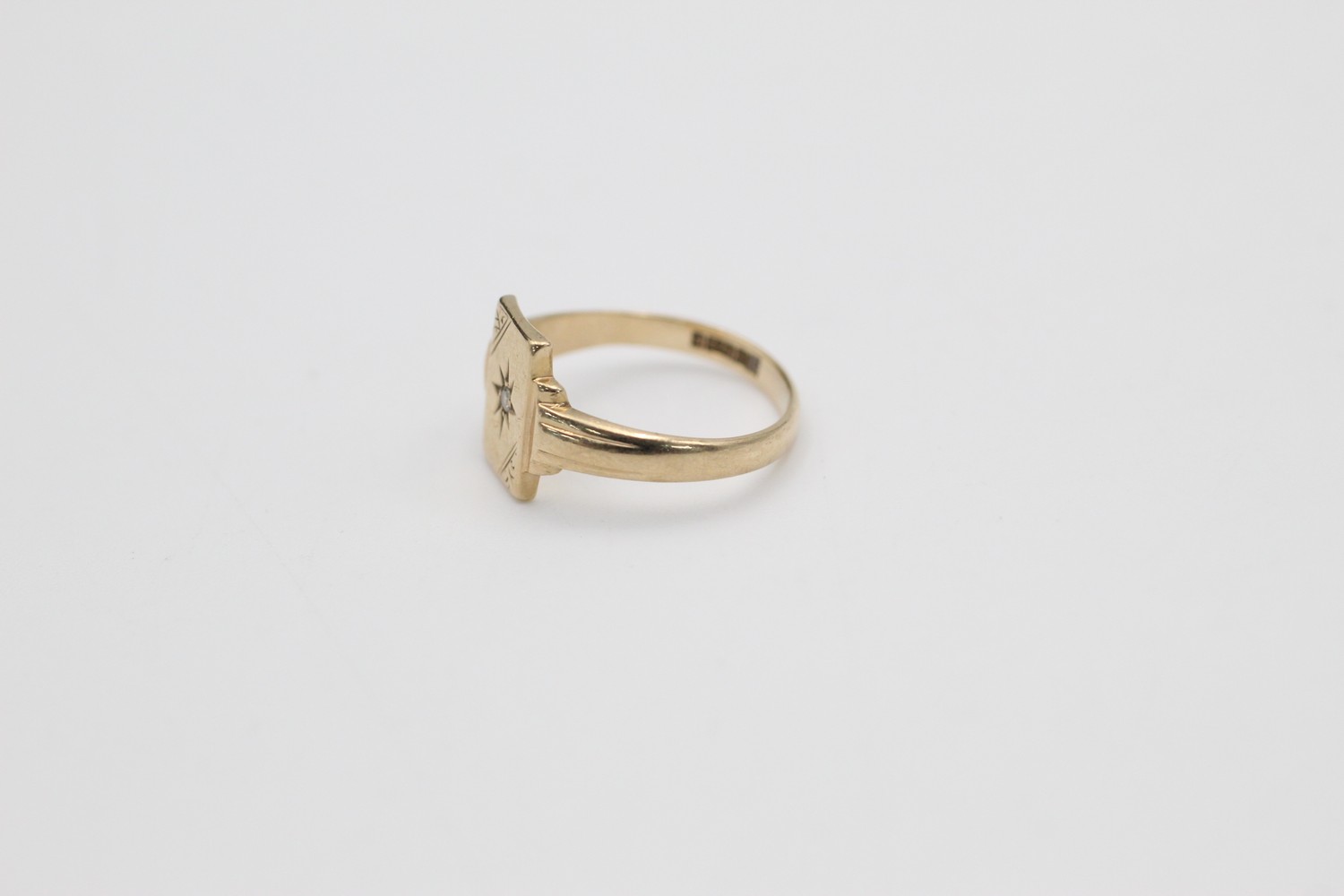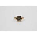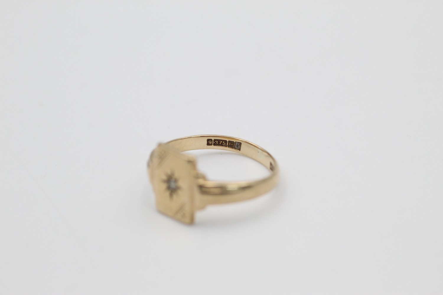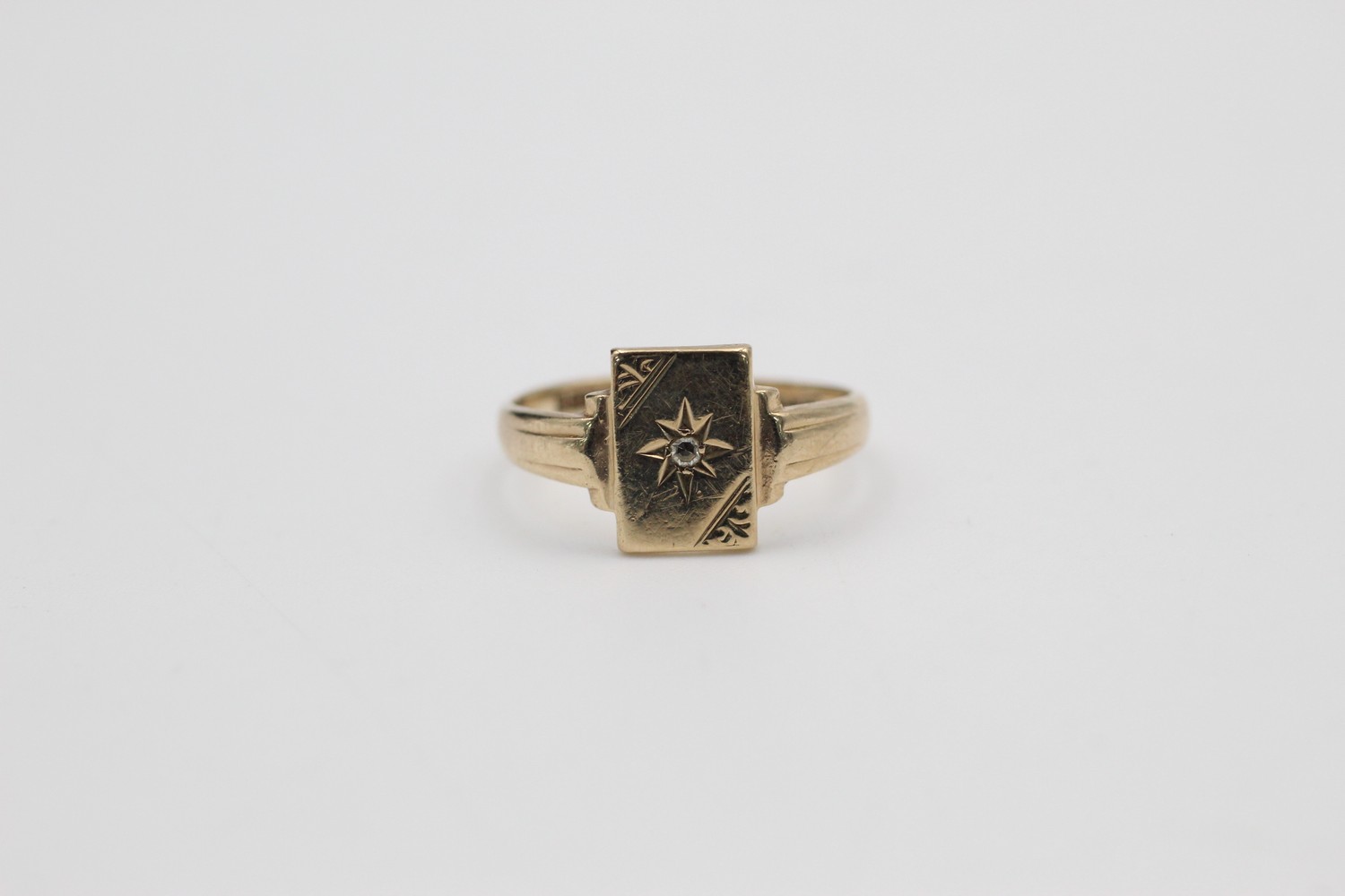 Vintage 9ct gold engraved rectangle signet ring with burnish set gemstone (2.1g)
