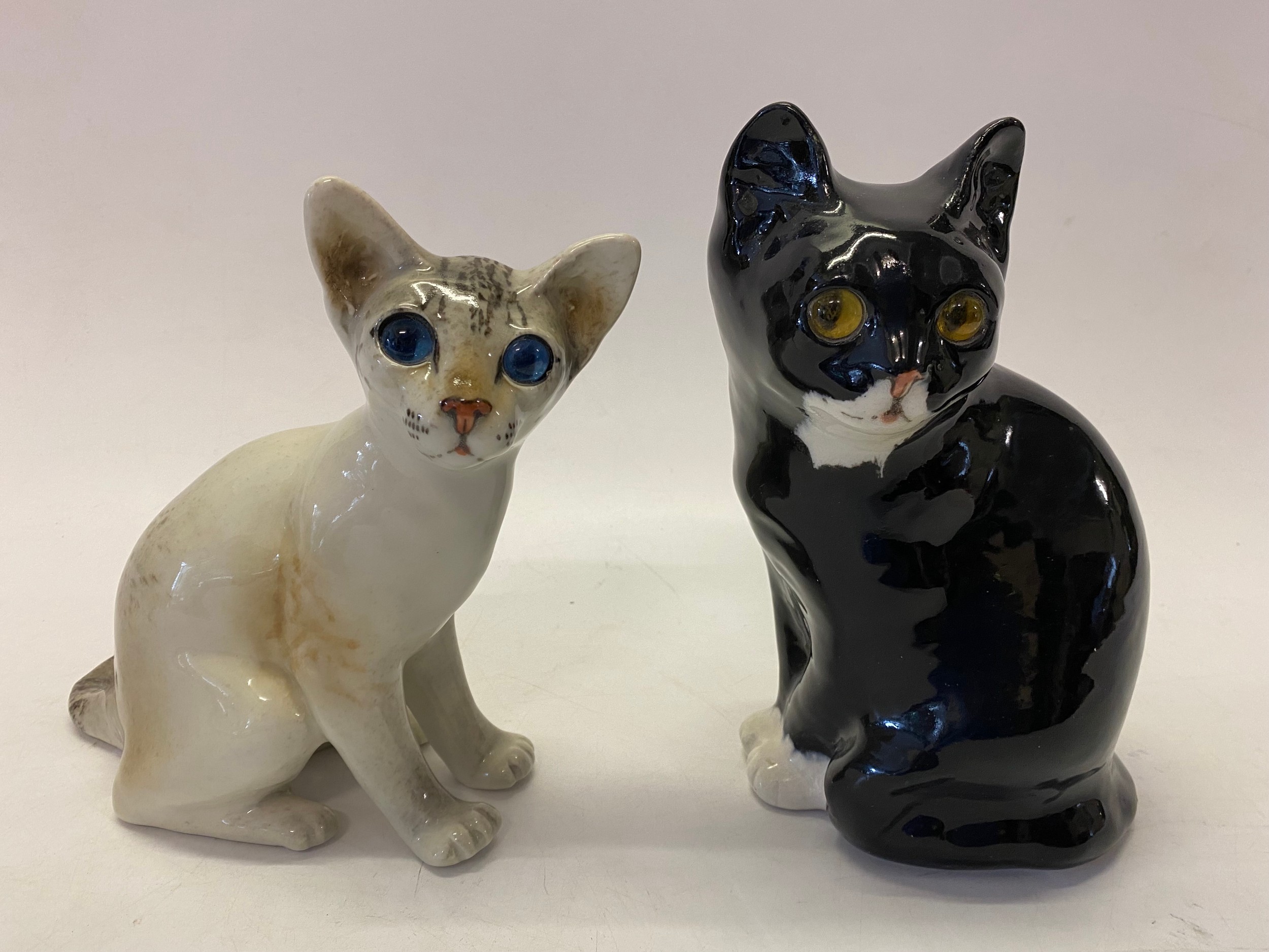 A Winstanley model of a grey cat with blue eyes - 8 1/2in. high and a black ditto - 9 1/4in. high