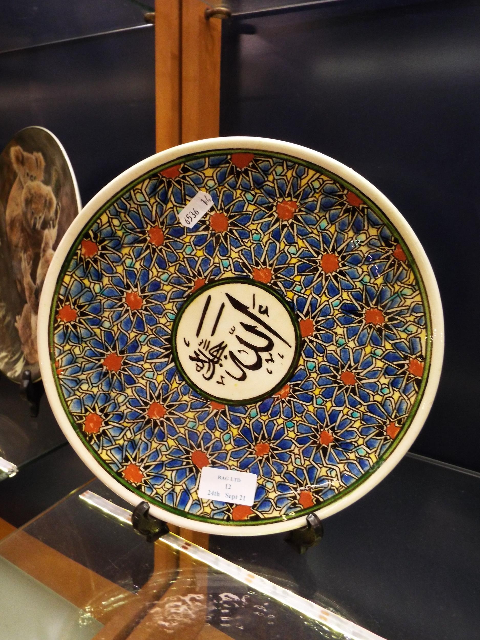 A vintage Turkish Kutanya plate with Iznik decoration