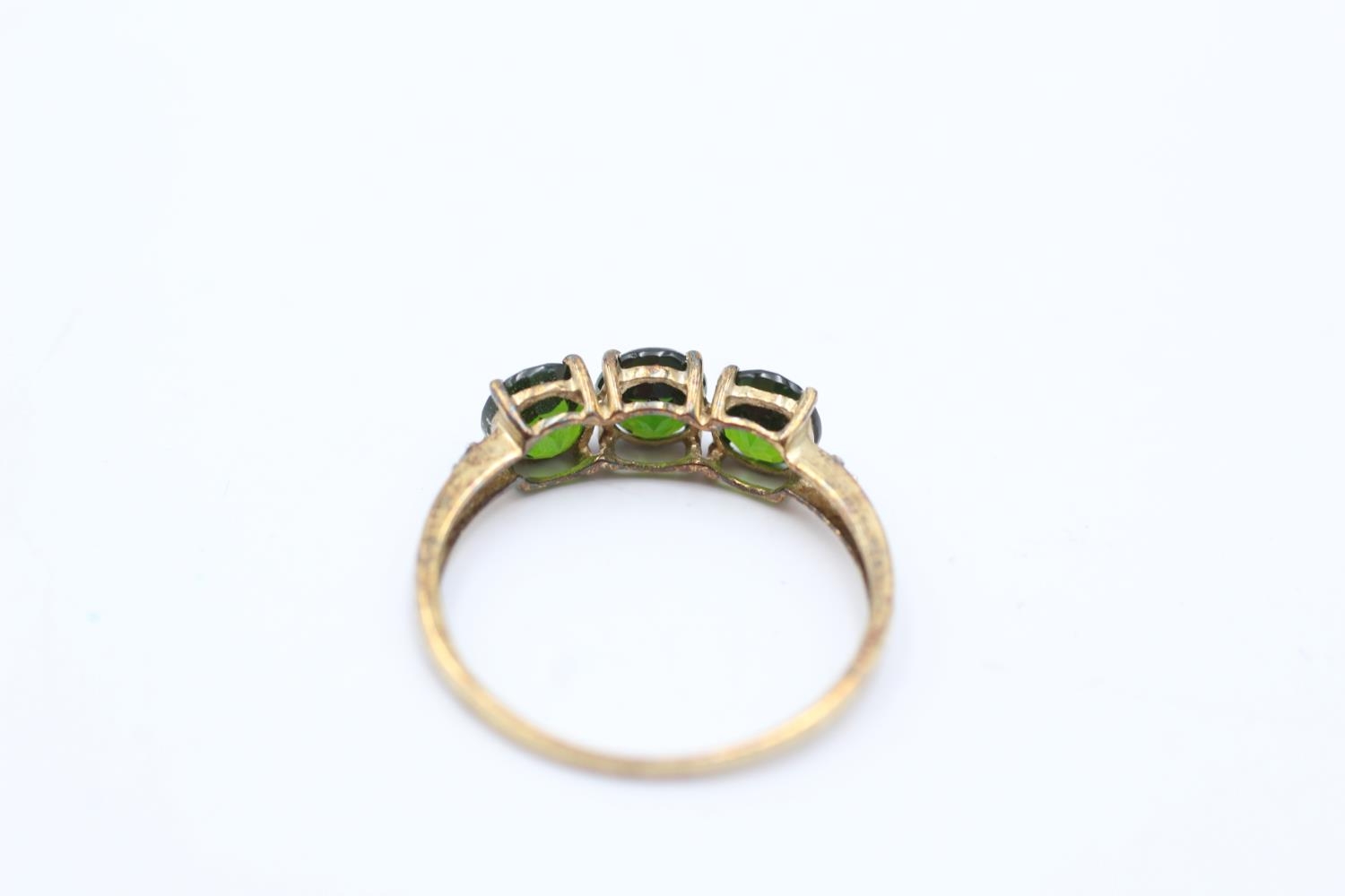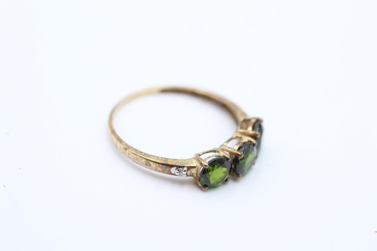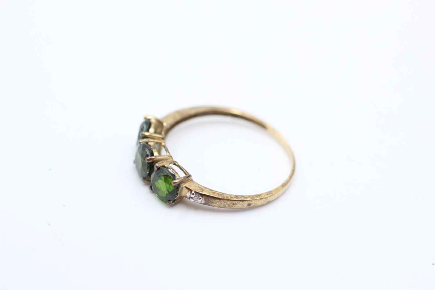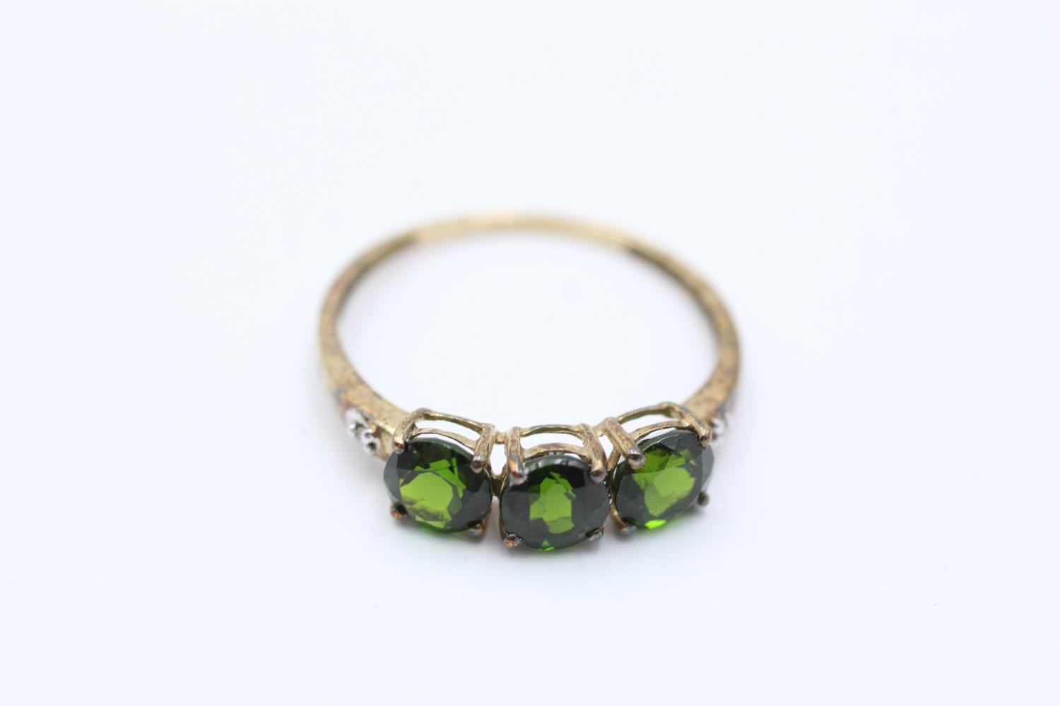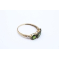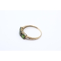 9ct gold vintage diamond and diopside three stone ring (1.2g) Size P